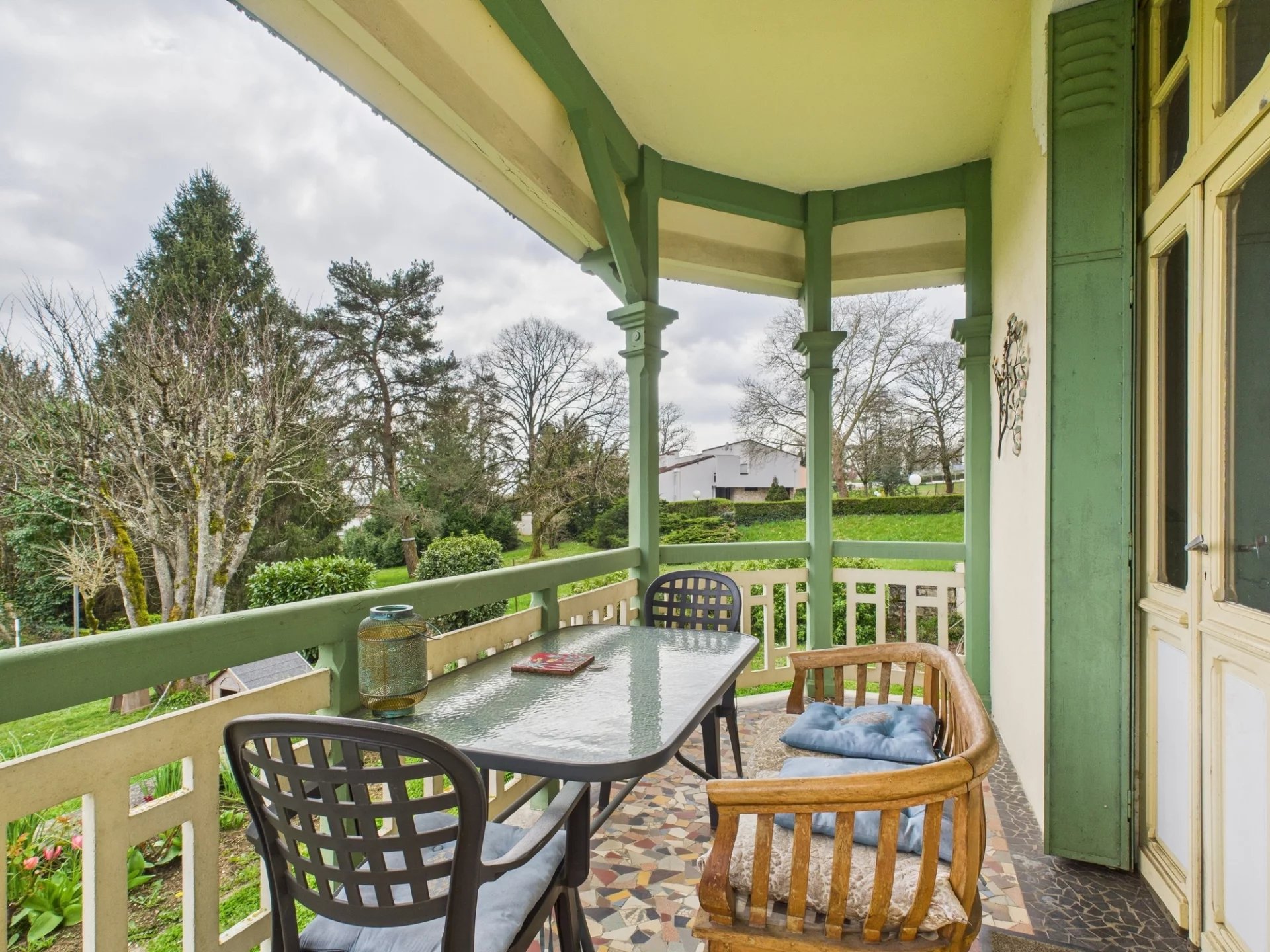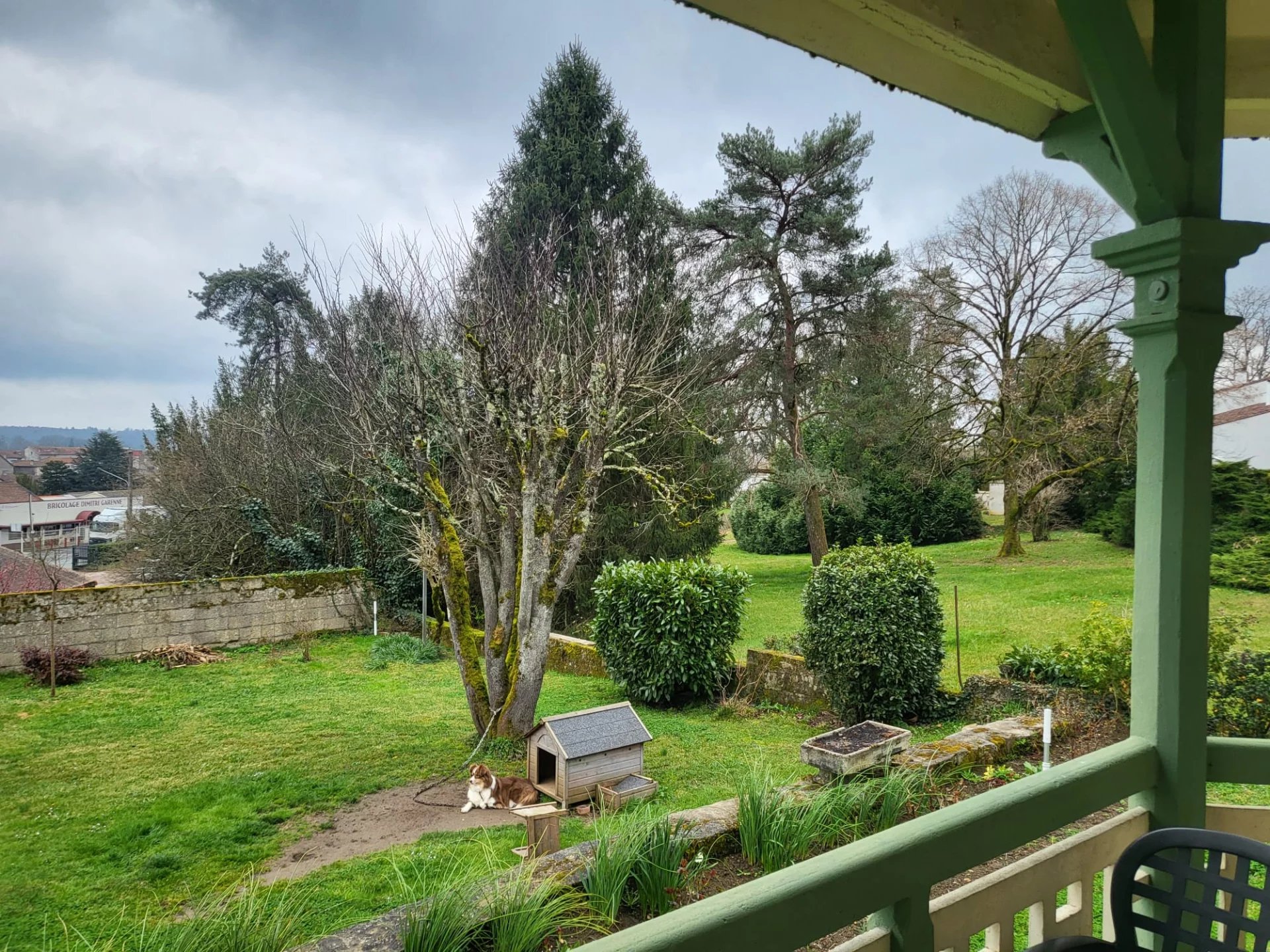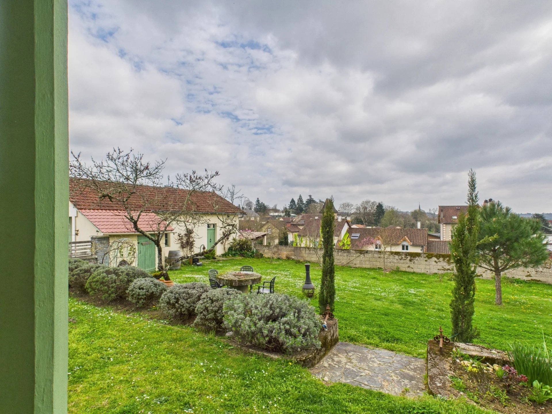 - Flat, tree-filled garden with barbecue area