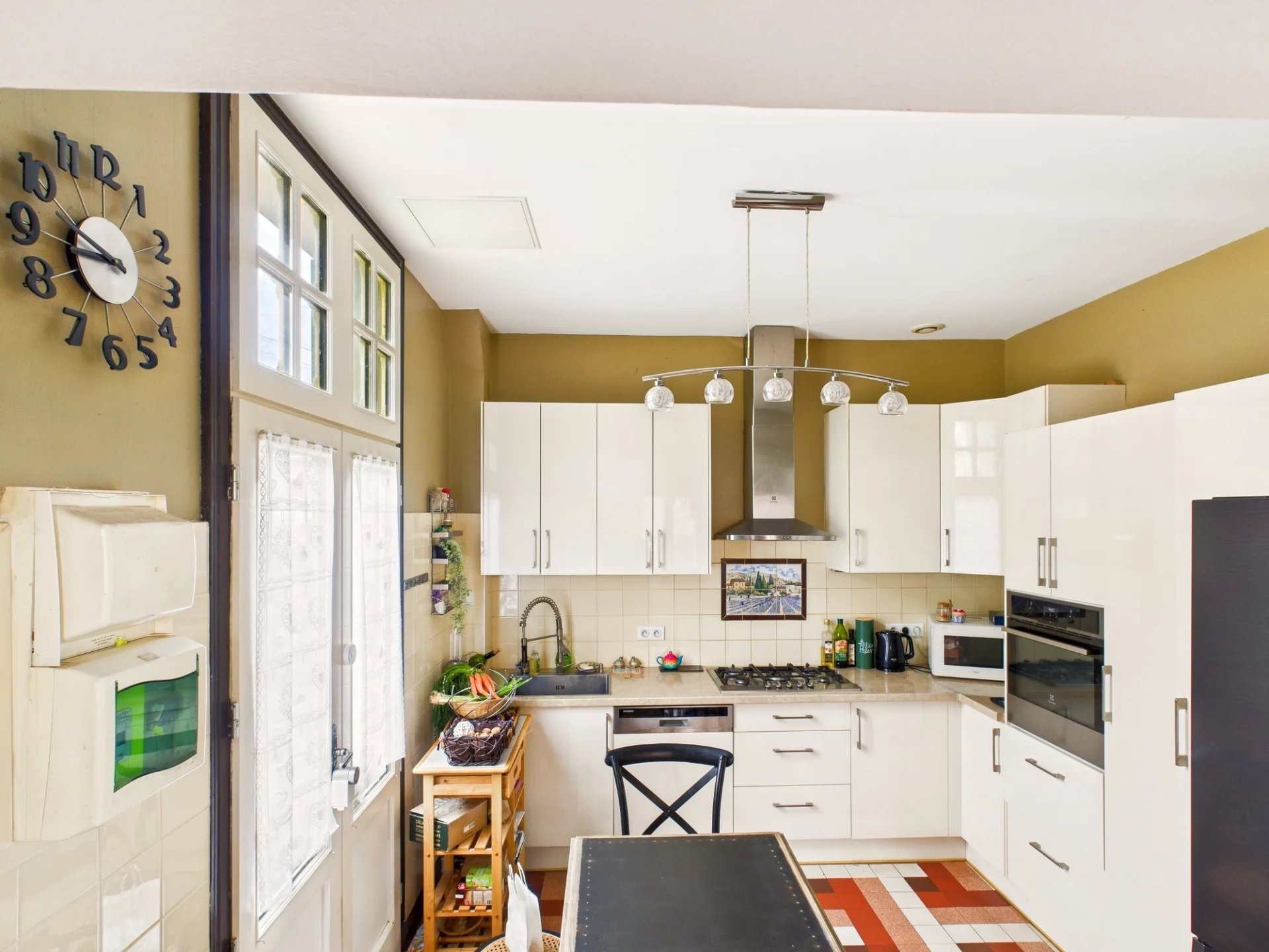 Outside, the flat garden is easy to maintain and ideal for relaxing or entertaining. A garden house with built-in barbecue makes summer gatherings even more enjoyable. Meanwhile, the large garage provides plenty of storage.