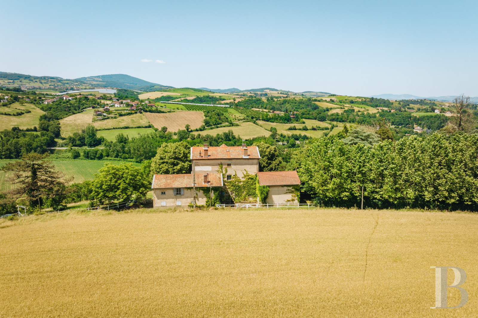 Perched above the Brévenne valley in the Lyonnais mountains, this 19th-century property offers peace, charm, and endless potential. Surrounded by rolling hills, orchards, and vineyards, it blends timeless character with rural tranquility—just 35 minutes from Lyon.