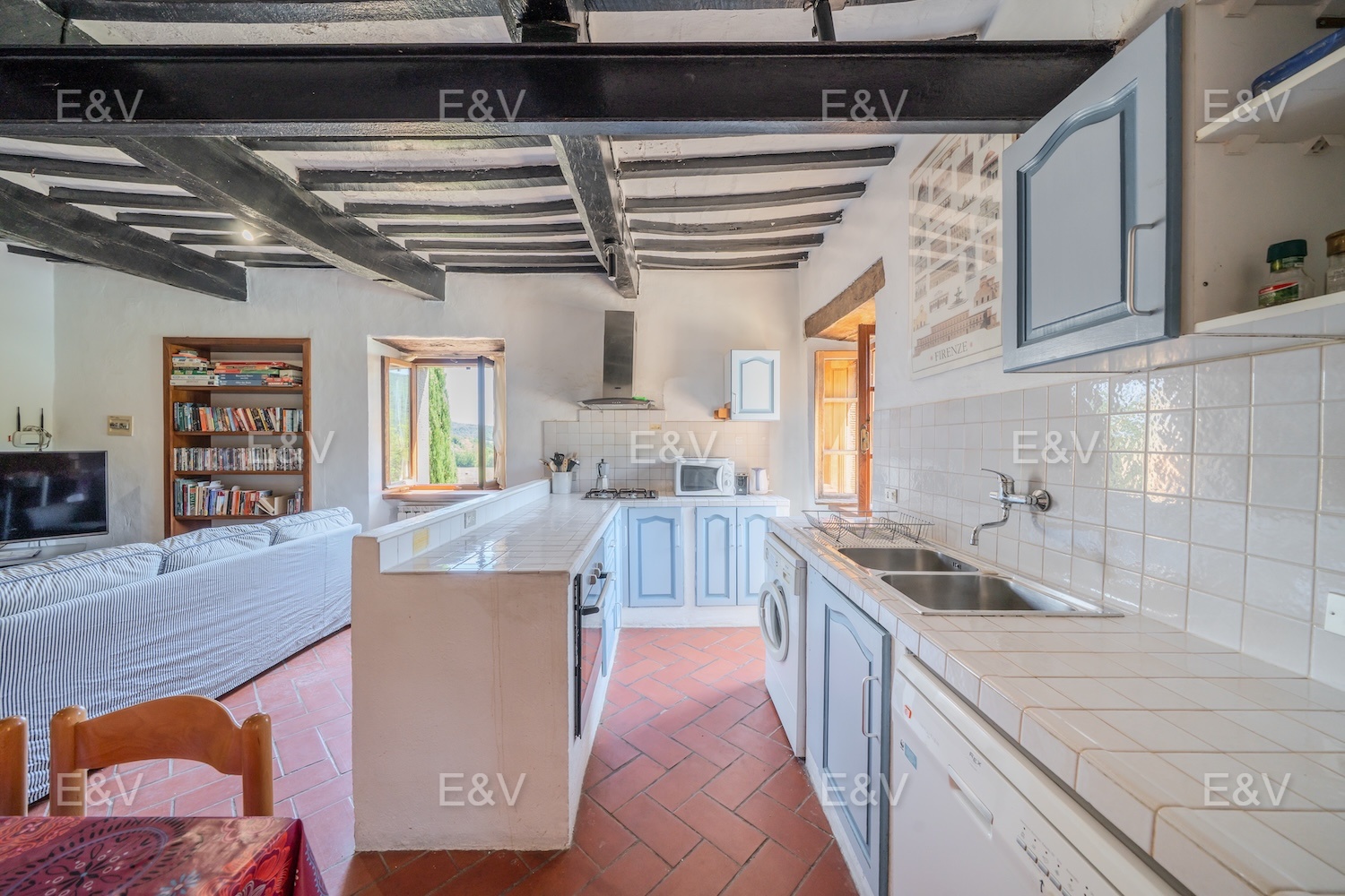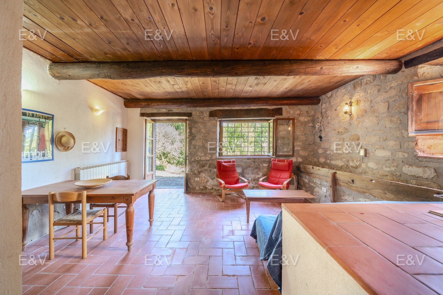 The home measures 250 m² and is divided into two independent apartments, each with its own entrance. Original features such as exposed stone walls and fireplaces create a warm, authentic atmosphere.
