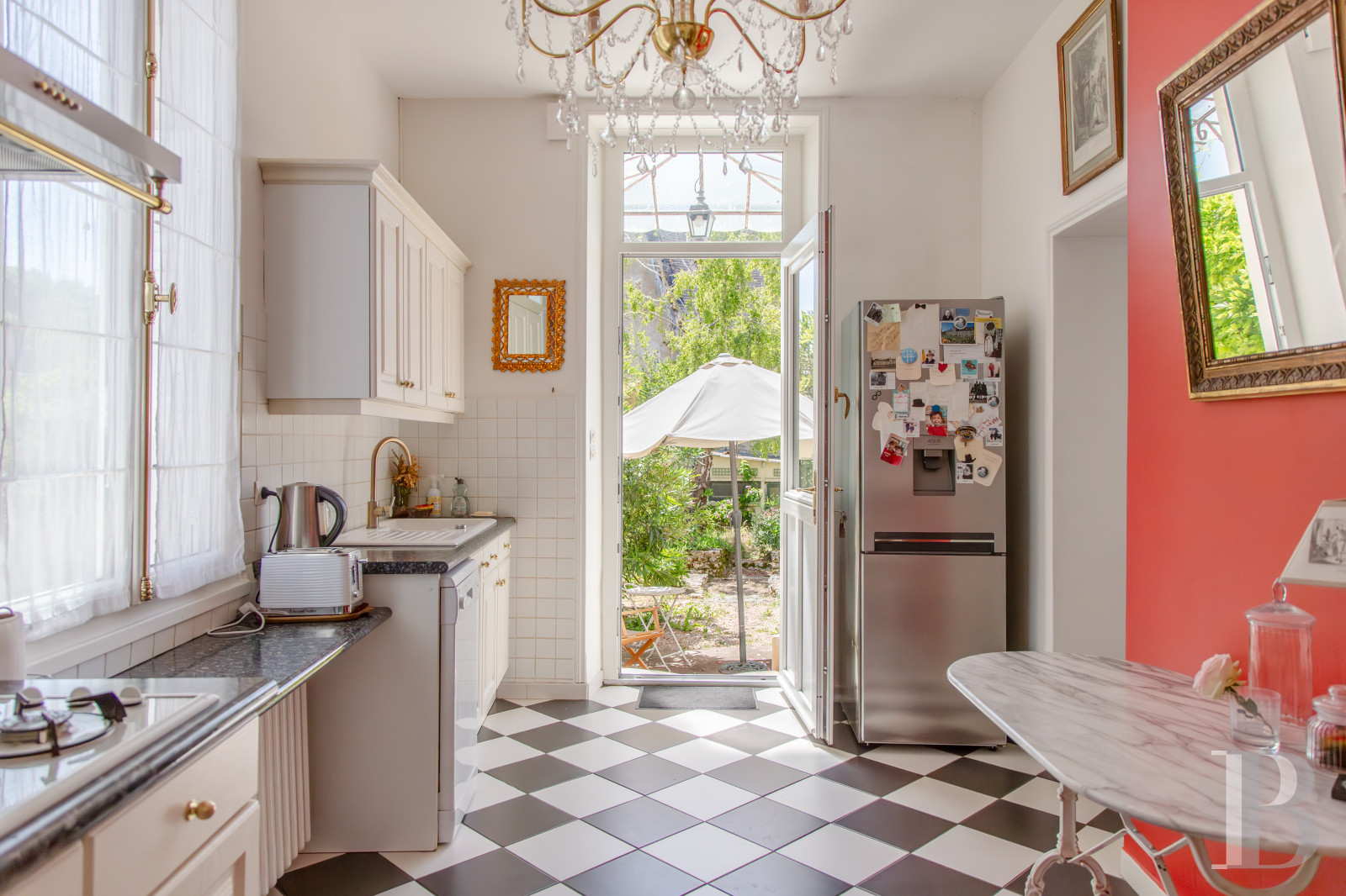 Inside, you’ll find high ceilings, slate and parquet floors, and original decorative elements throughout. The kitchen opens to a terrace with views of the village church tower—perfect for quiet mornings or summer evenings.