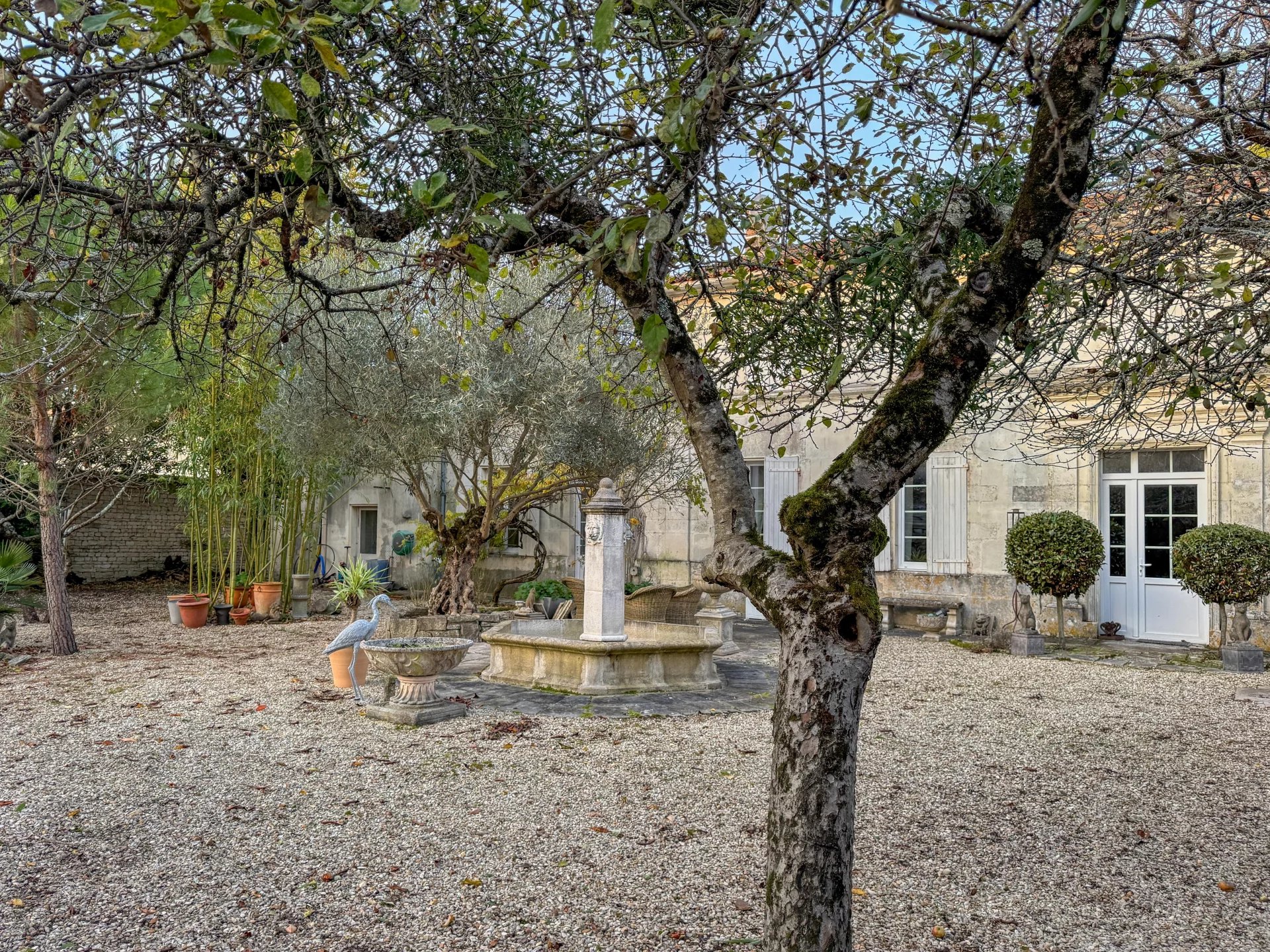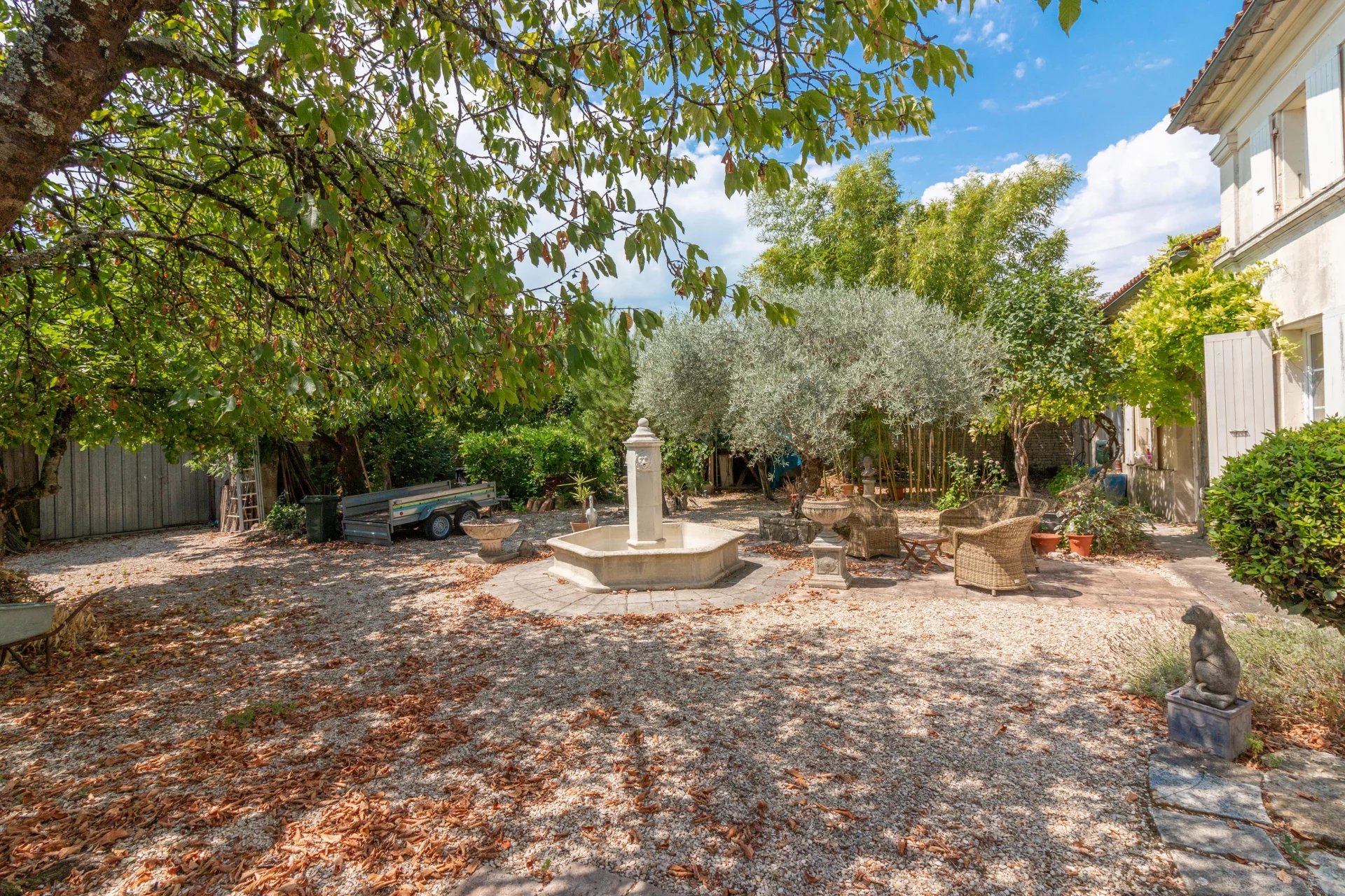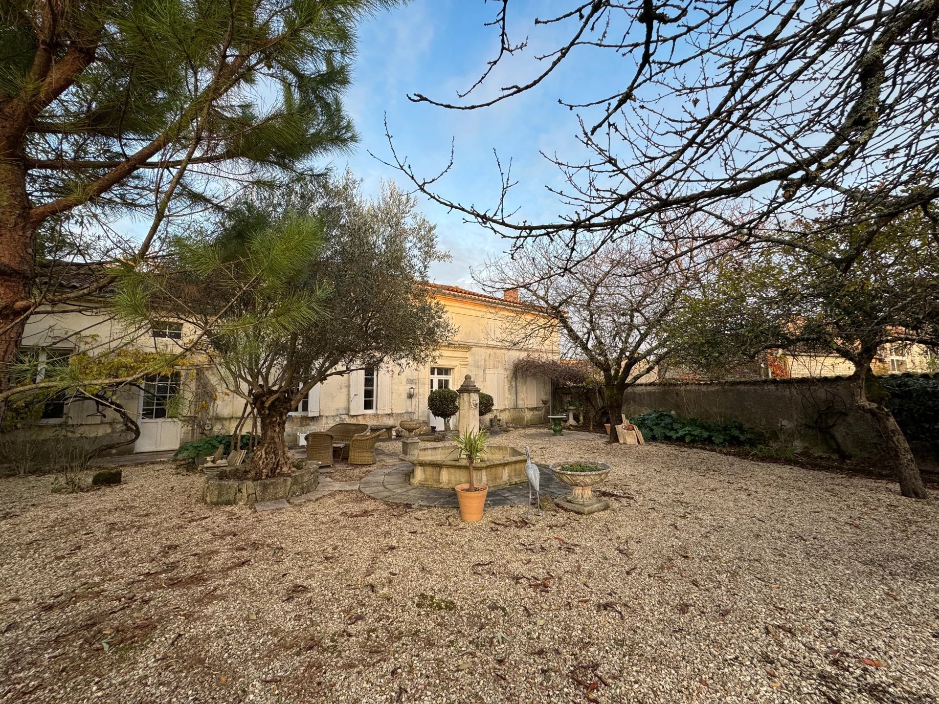 Set behind tall gates in the village of Réparsac, this traditional Charentaise home offers privacy, charm, and space—just a short drive from Jarnac and Cognac.