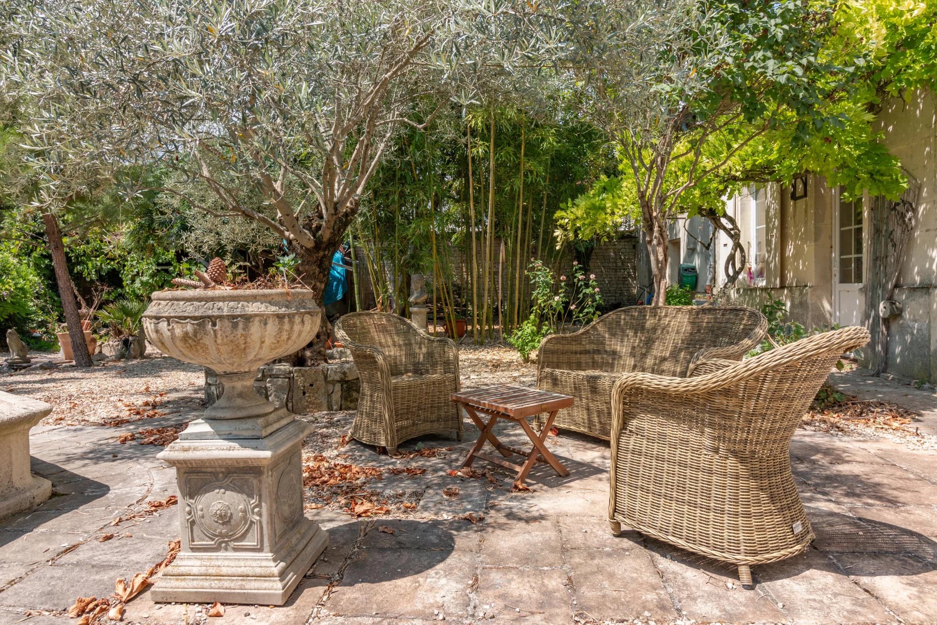 Outside, the private garden is a true retreat. Ideal for relaxing or entertaining, it’s both sunny and secluded.