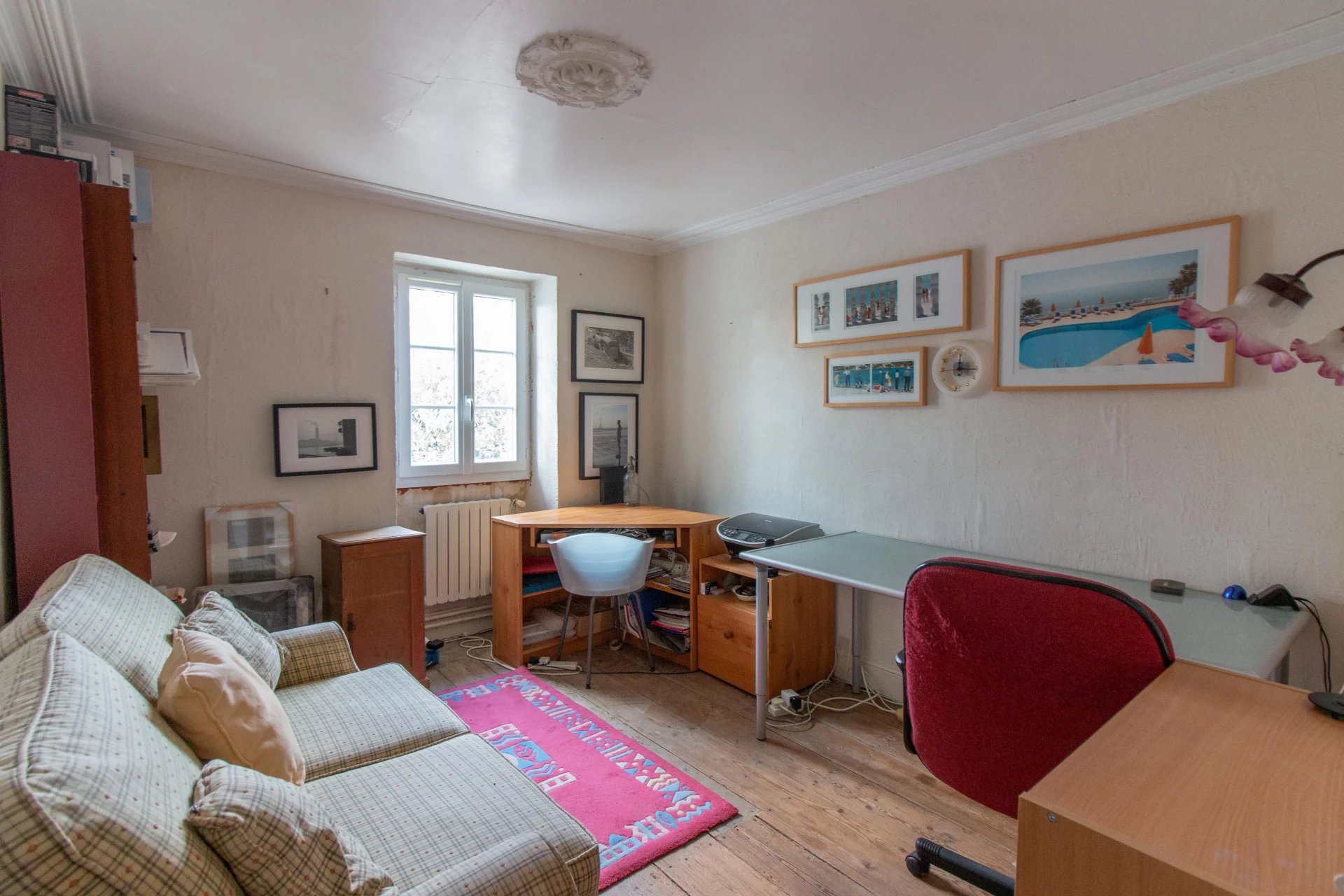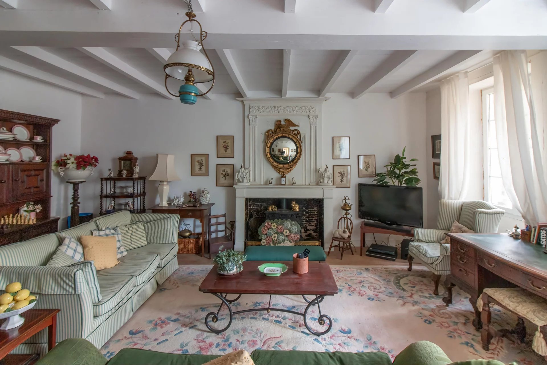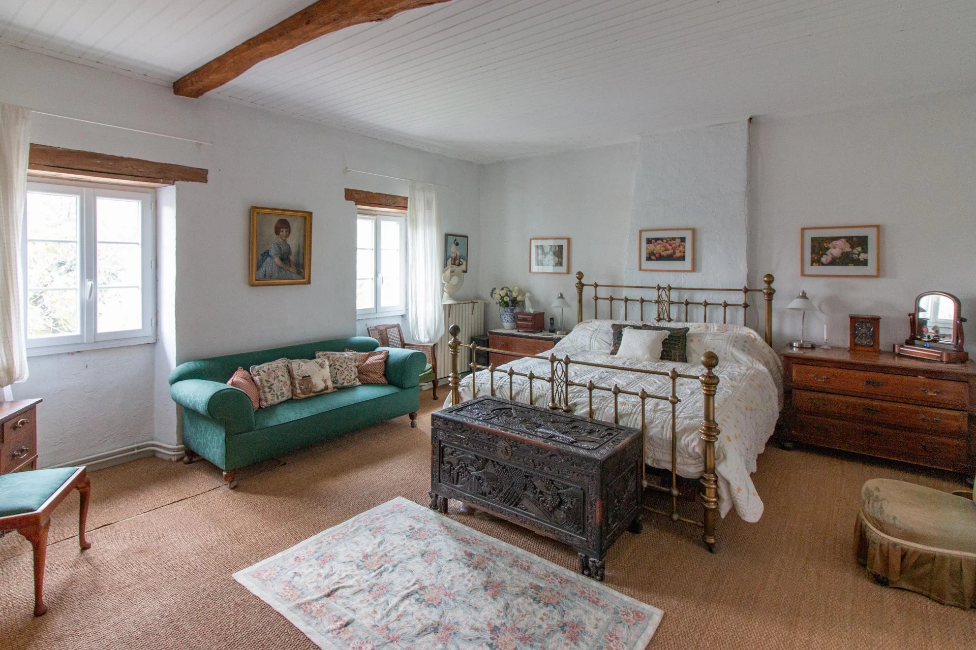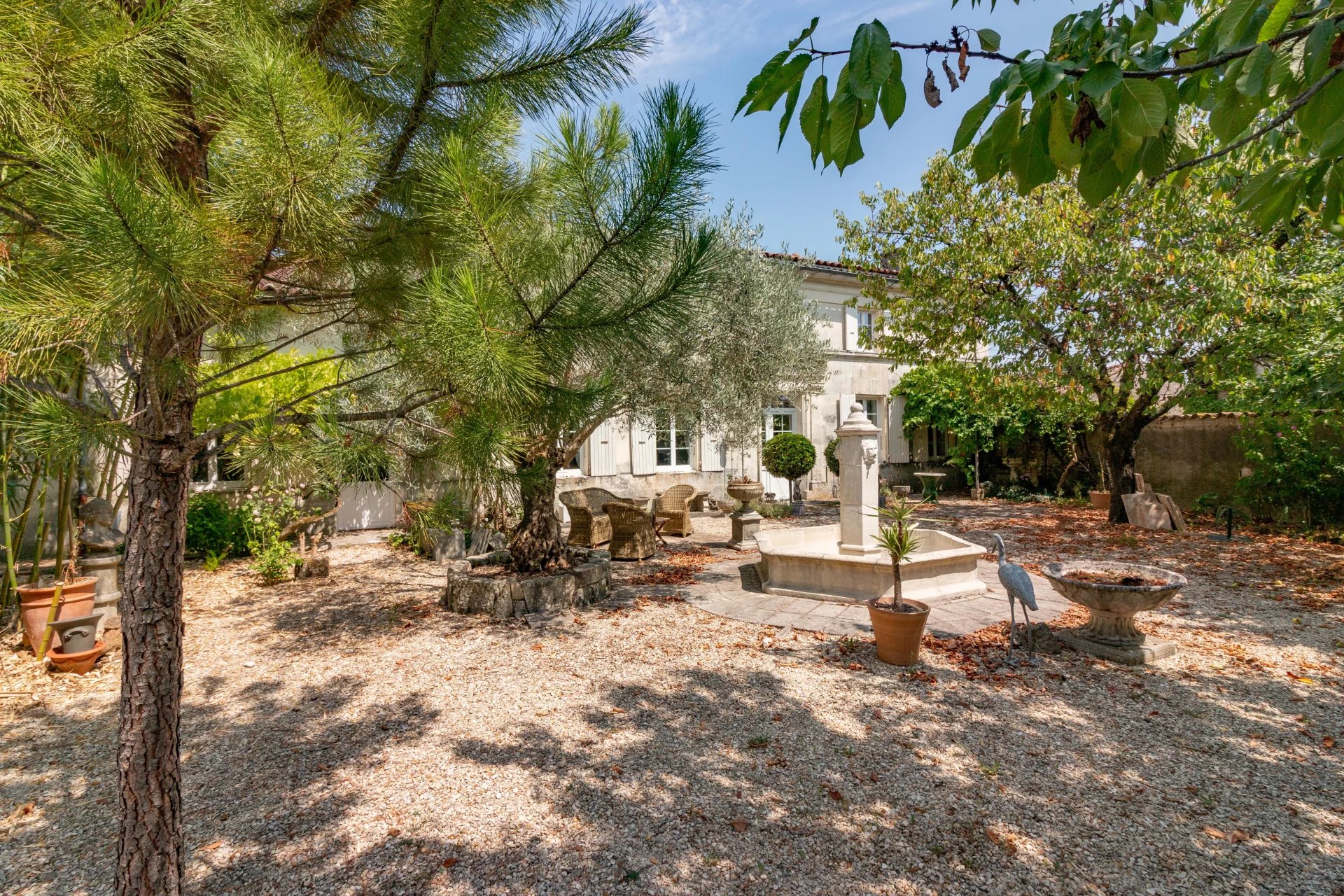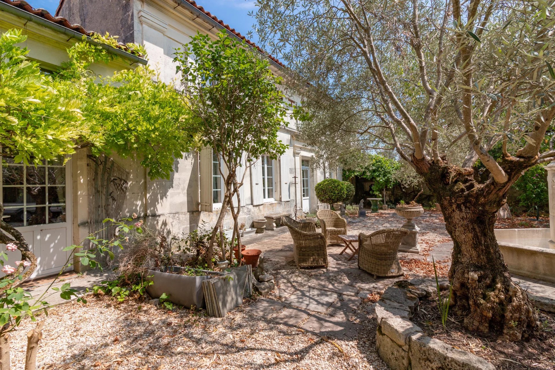 The stone house sits within a walled courtyard garden, beautifully landscaped and easy to maintain. Inside, the rooms are spacious and full of original character, including fireplaces and high ceilings.