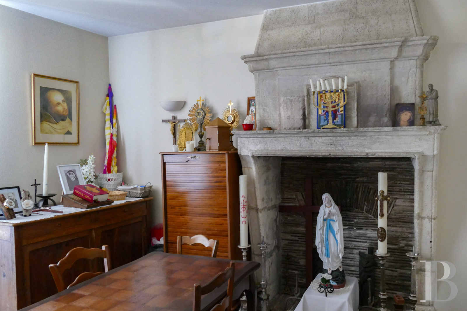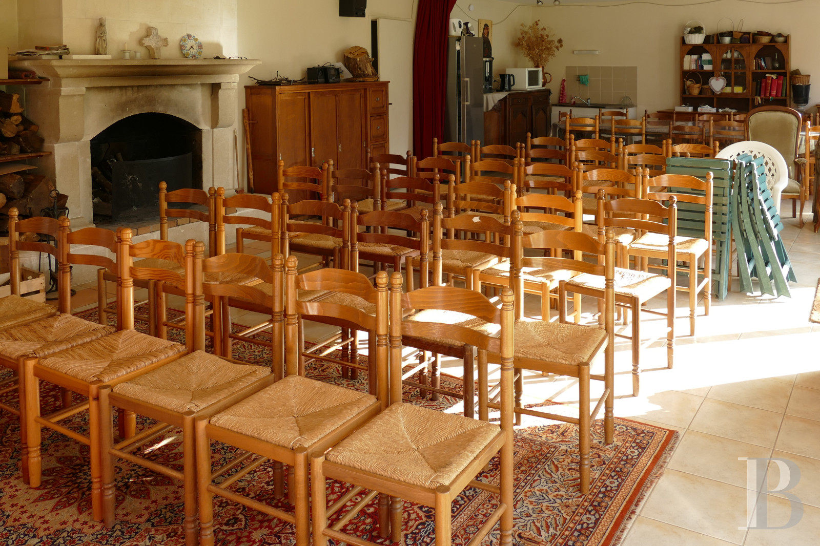 Inside, authentic character shines. Travertine floors, stone fireplaces, and original wooden doors add timeless appeal, while tall French windows fill the rooms with natural light.