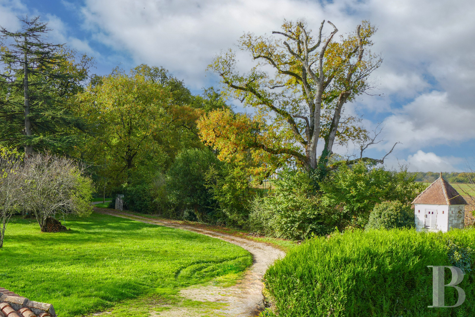 - Enclosed 5,500 m² garden with mature trees and hedges