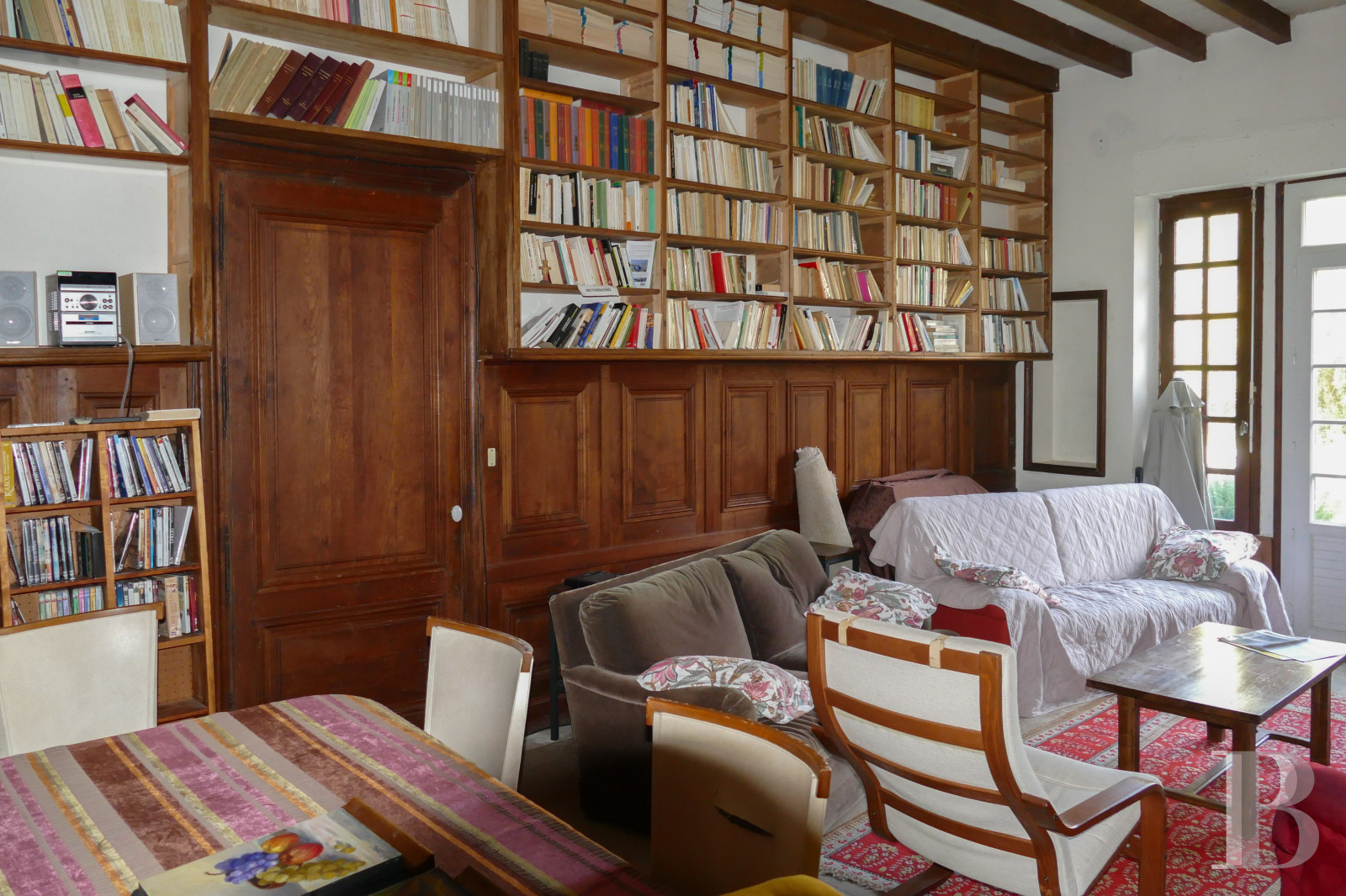 - Original fireplaces, oak library shelves, and period details
