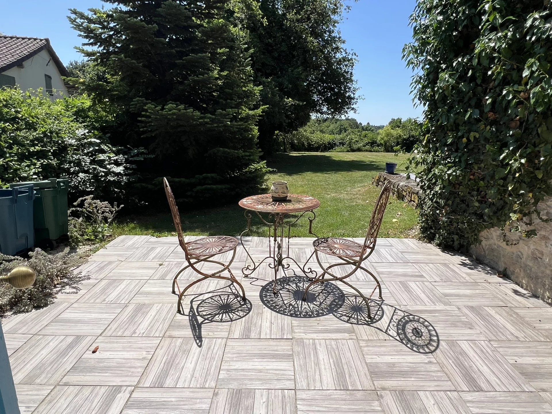 - Mature gardens with trees and hidden corners