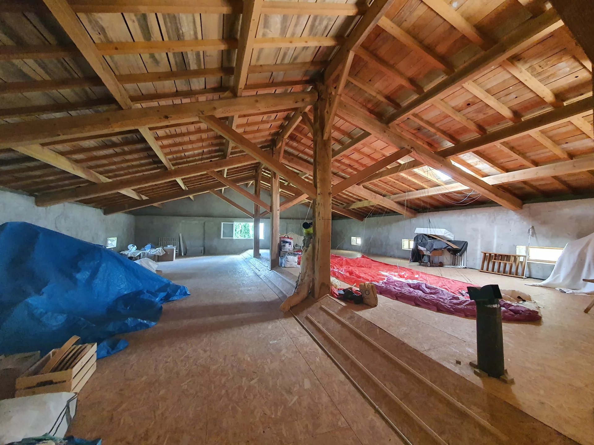 The main house includes two bedrooms, a bright living space, and an attached barn with new double-glazed windows. A second large barn stands ready for conversion, making this an ideal choice for those seeking a gîte project or creative studio.