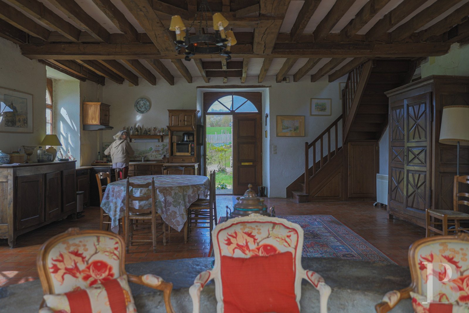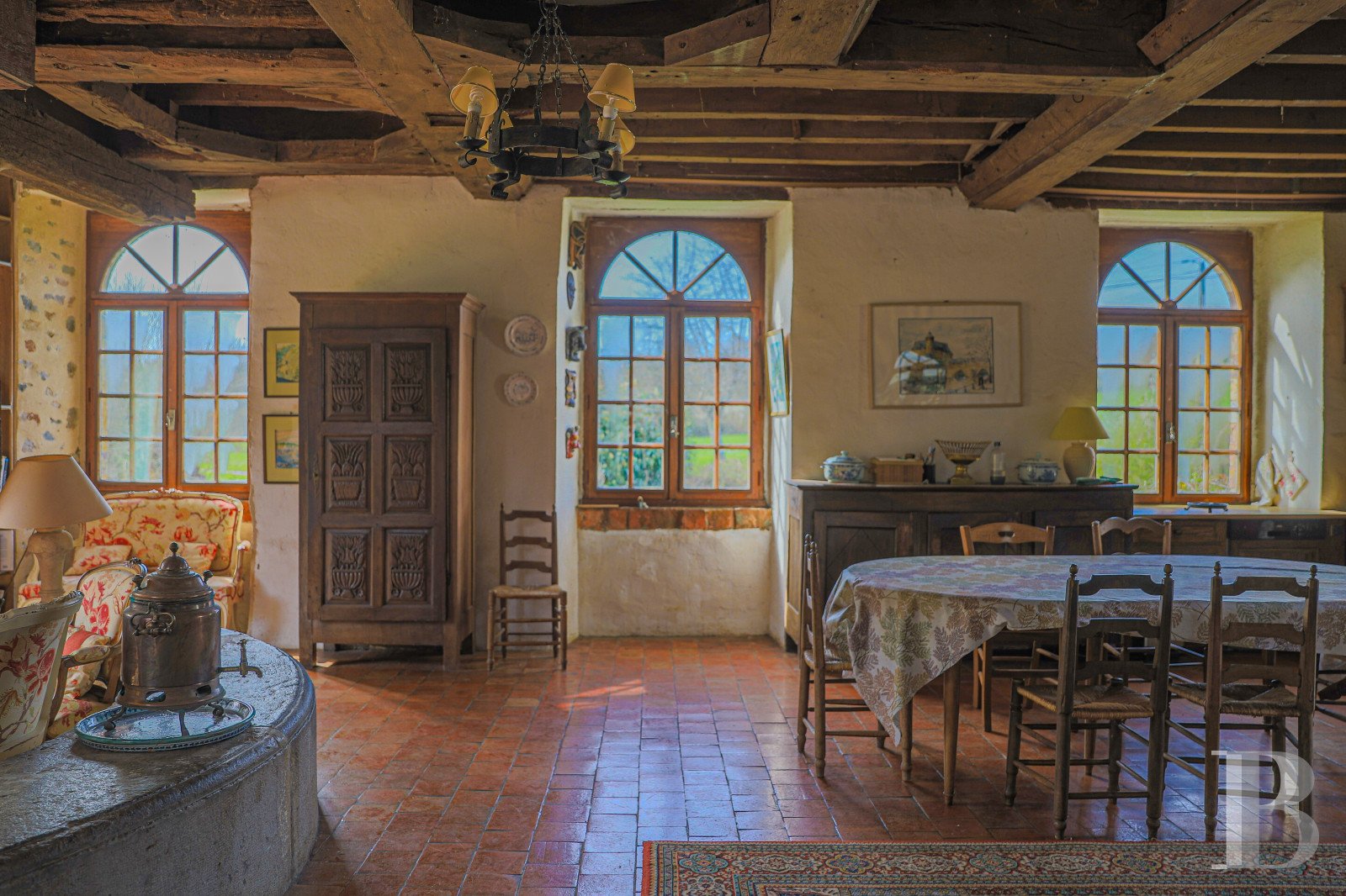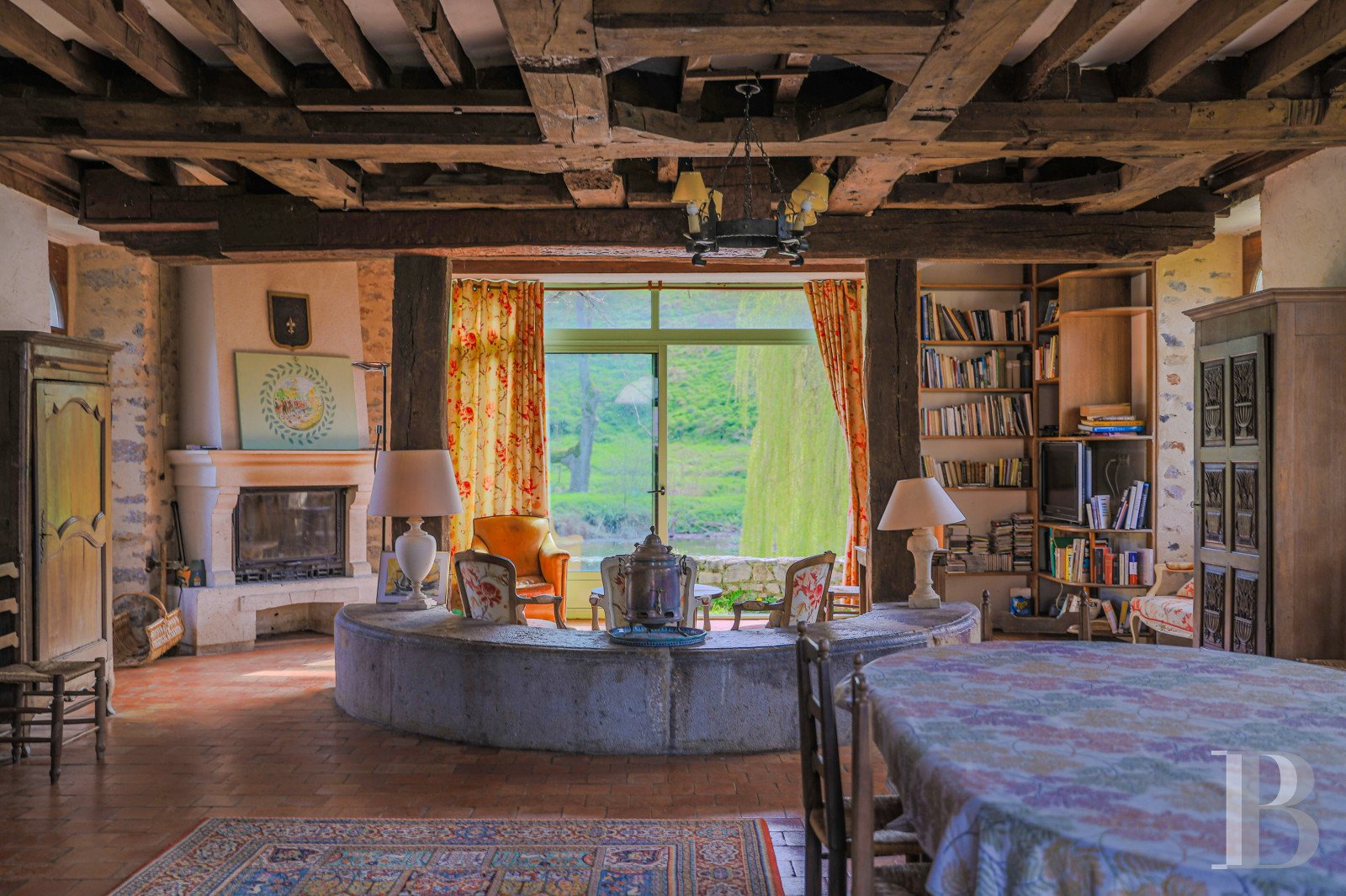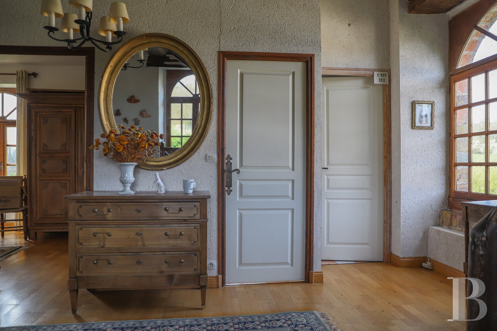 Stepping into the northern edge of Mayenne, this mid-19th century flour mill has been thoughtfully renovated into a striking home of character. The property stretches across gently rolling landscapes, overlooking the serene Erve valley and a small river that borders the estate.