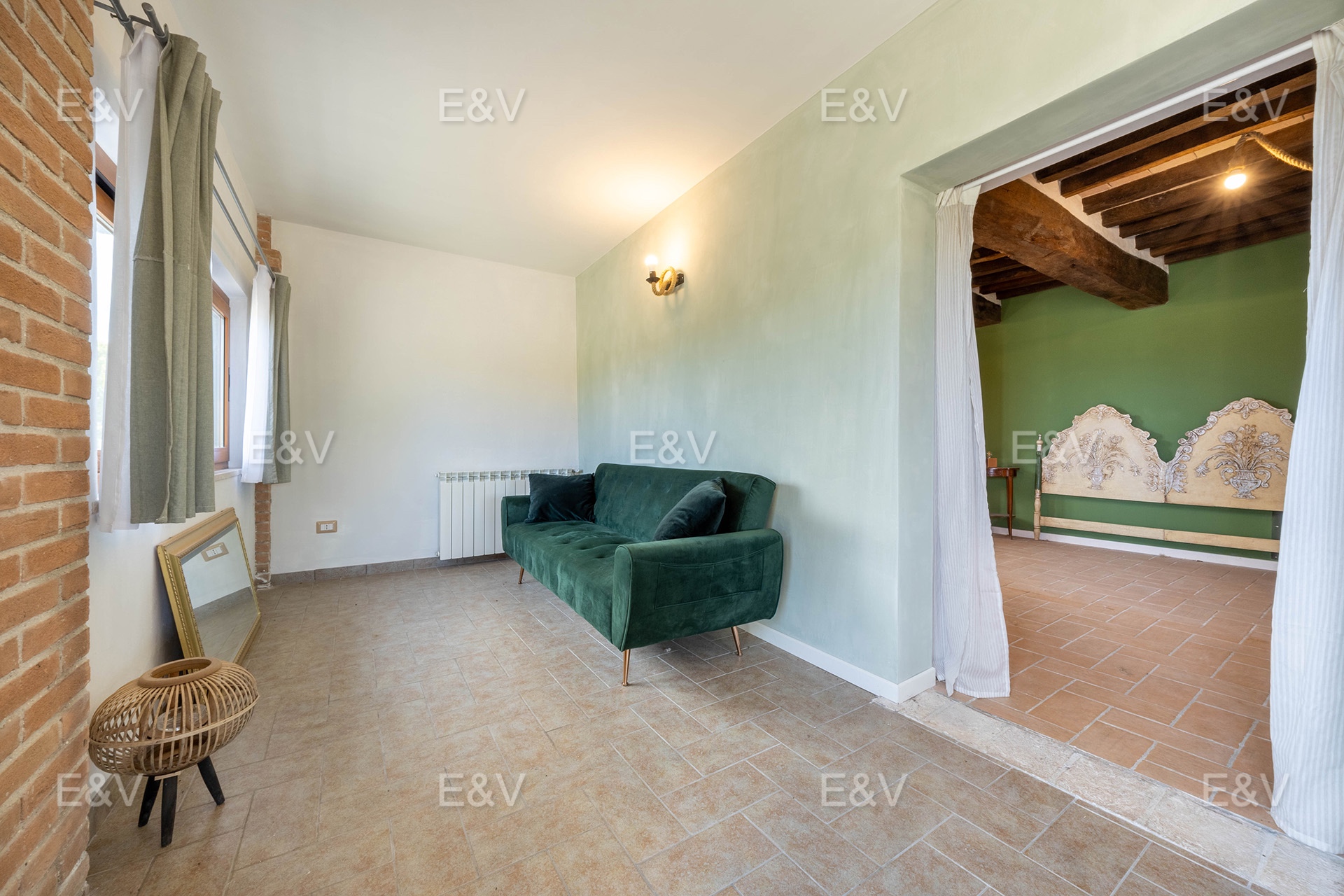 The grounds are just as inviting as the interiors. Gardens, flower beds, and a lawn surround the property, while 28 olive trees and a variety of fruit trees complete the landscape. A nearby annex offers space for expansion or the chance to create a swimming pool. From every corner, the views reach across rolling hills to distant mountains, offering a serene backdrop.