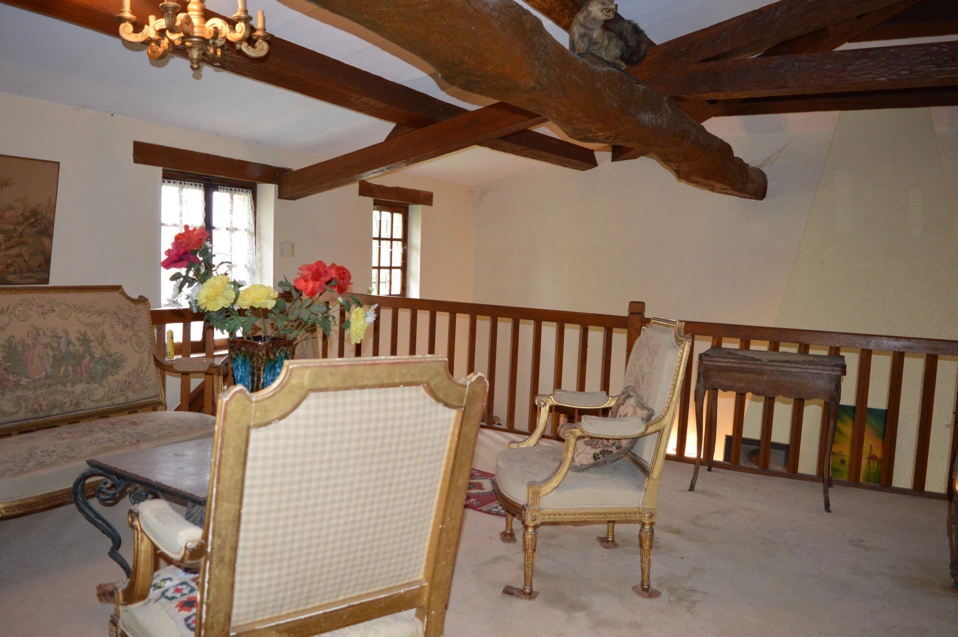 The layout is spacious and functional, with generous rooms on the ground floor and comfortable bedrooms upstairs. The attic and mezzanine provide extra space for conversion if desired. Outside, 3 hectares surround the home, with more land available for purchase.