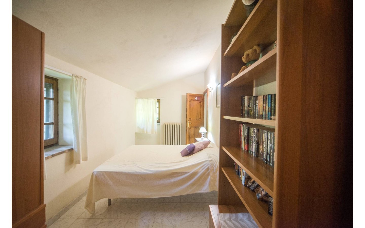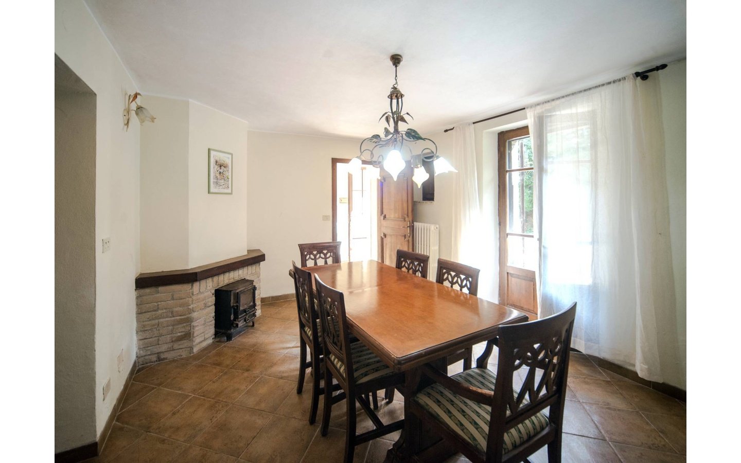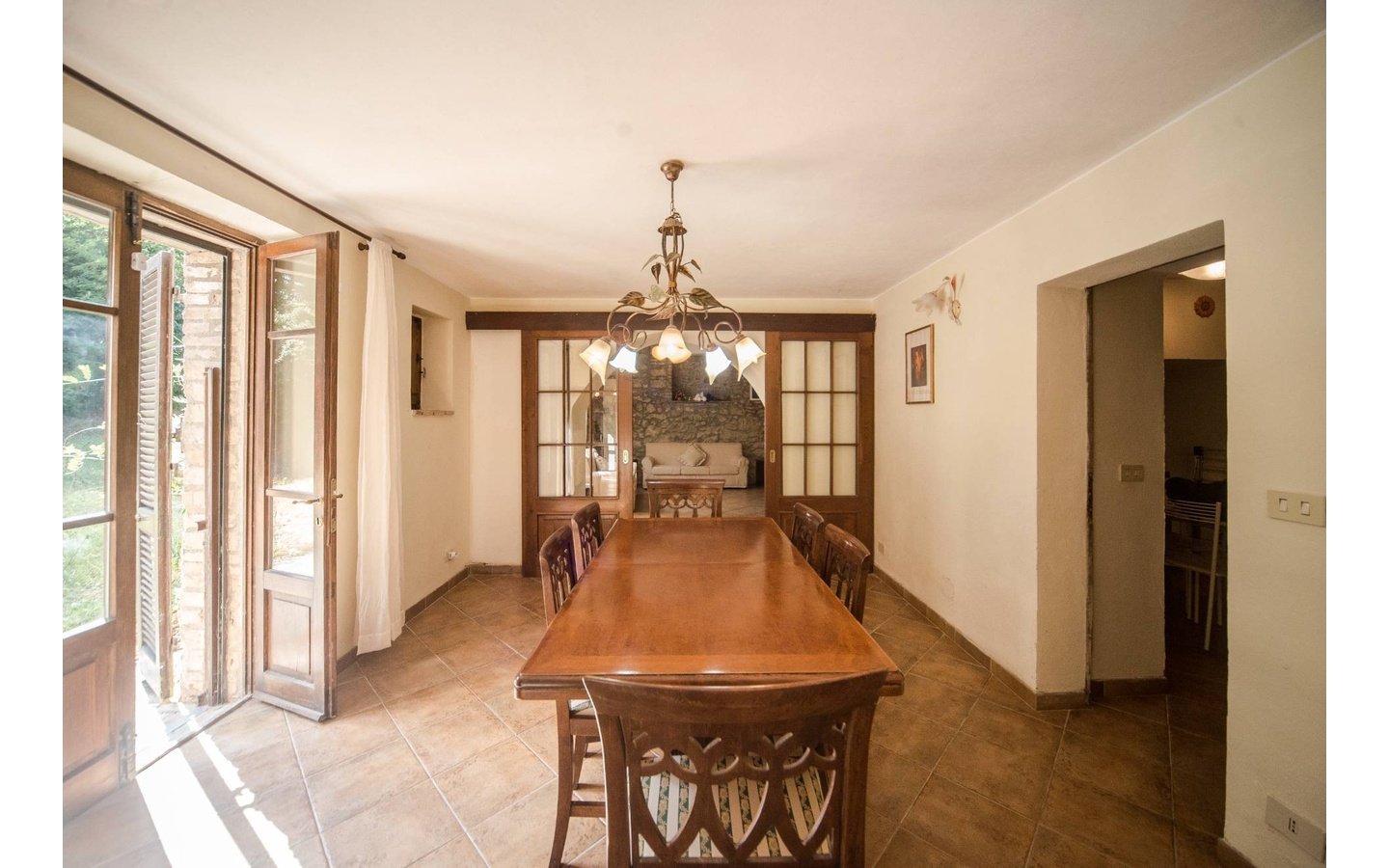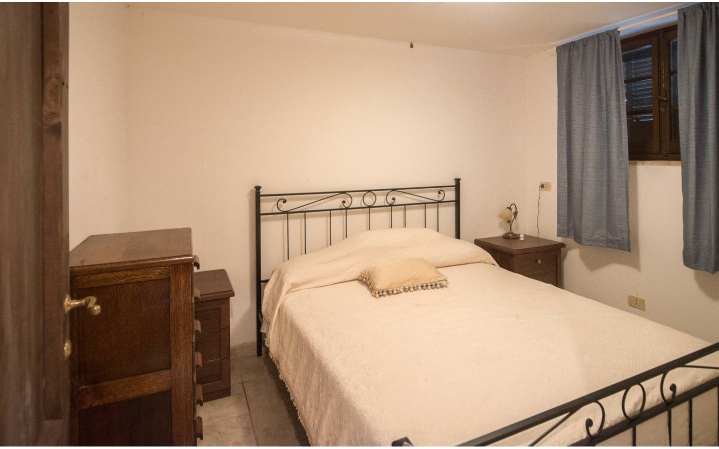 - Traditional wooden shutters and tiled floors