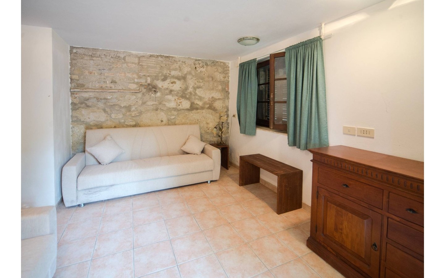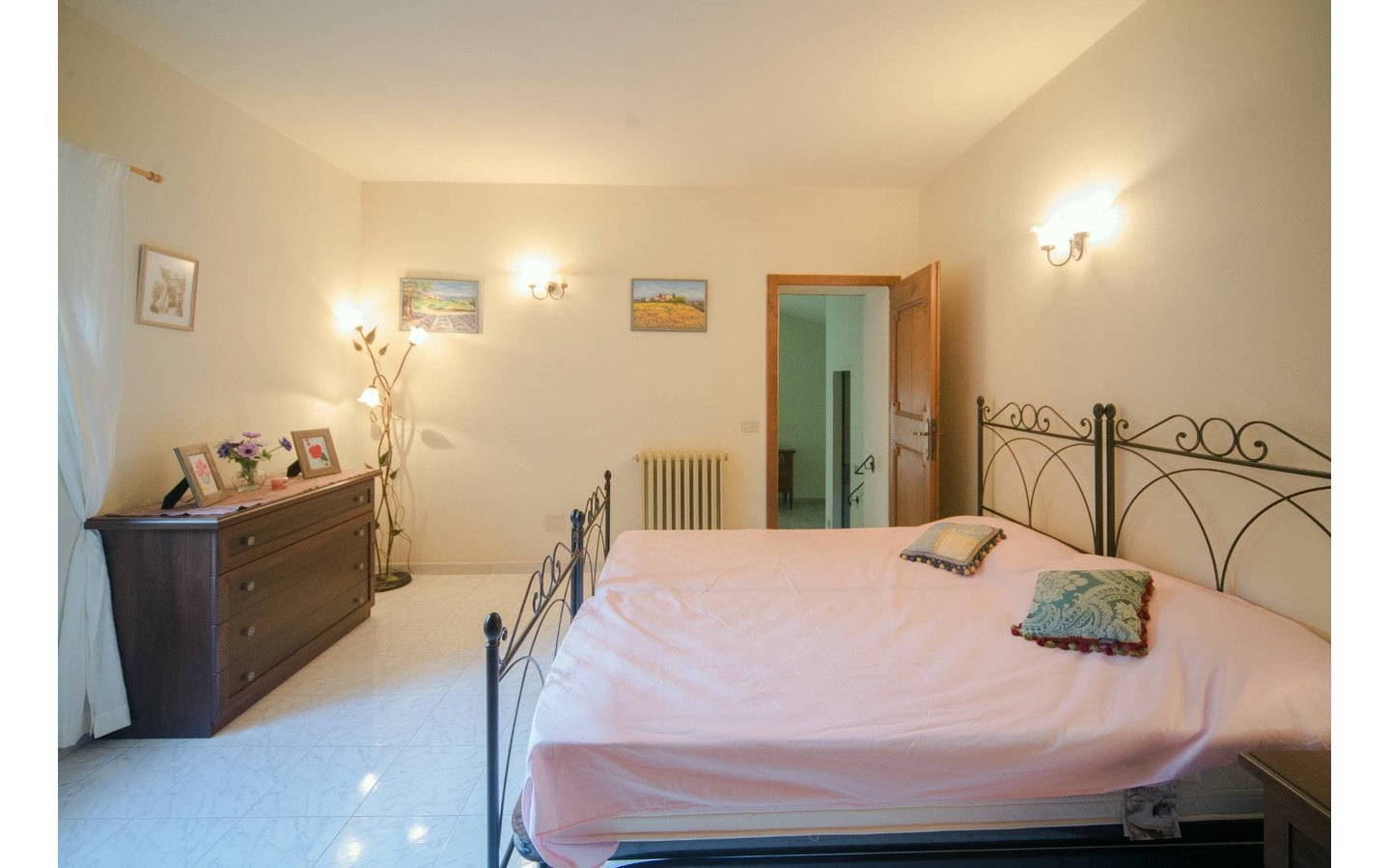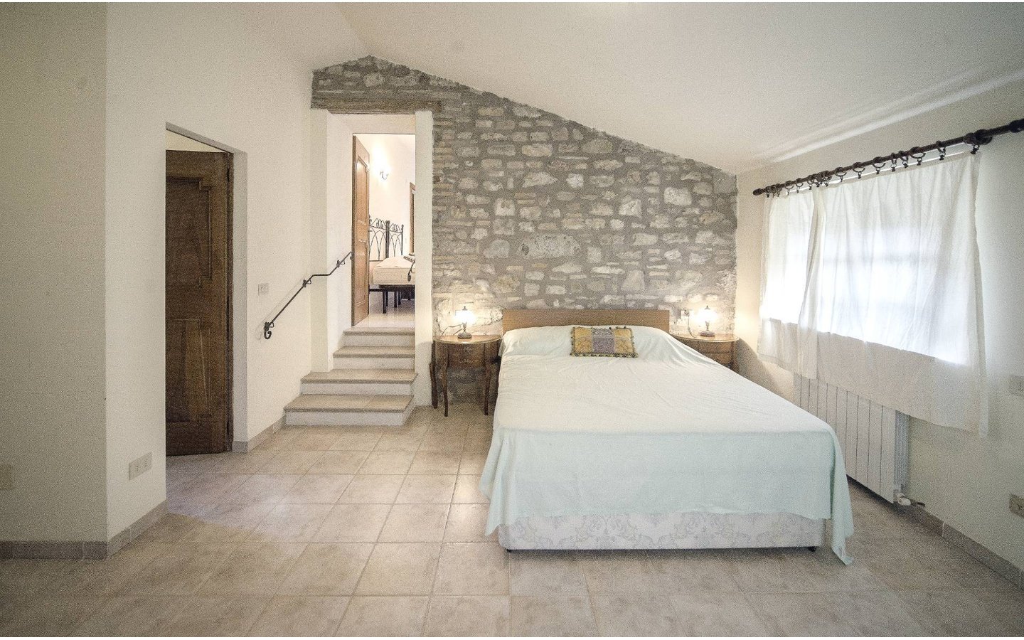 - Traditional wooden shutters and tiled floors