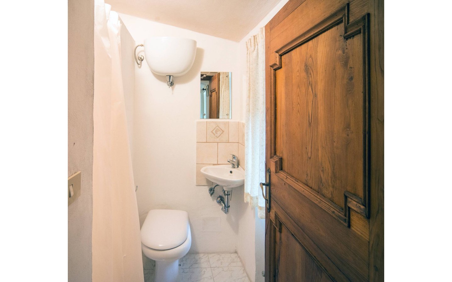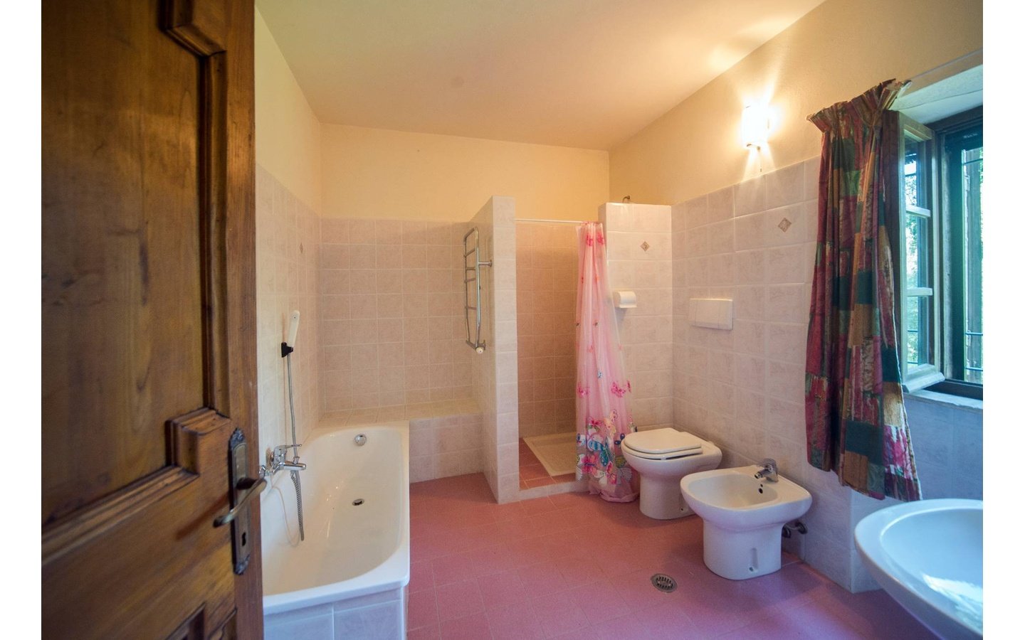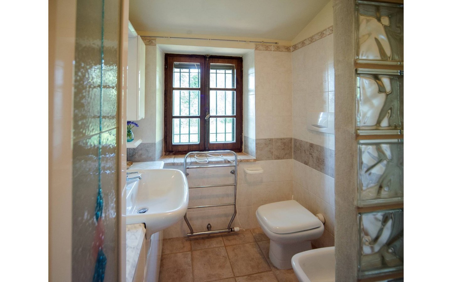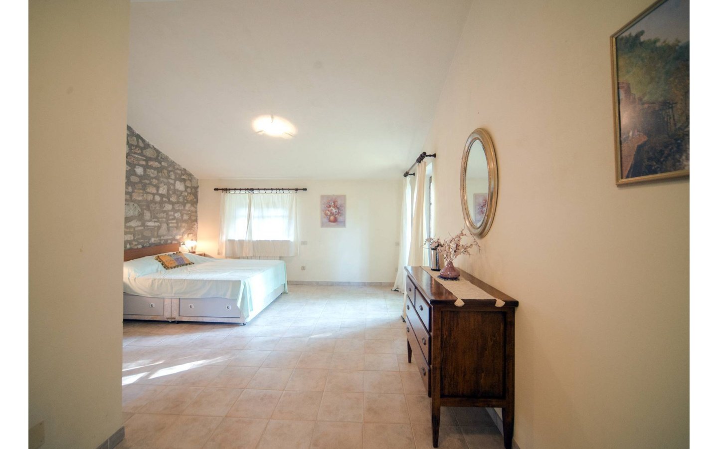 - Traditional wooden shutters and tiled floors