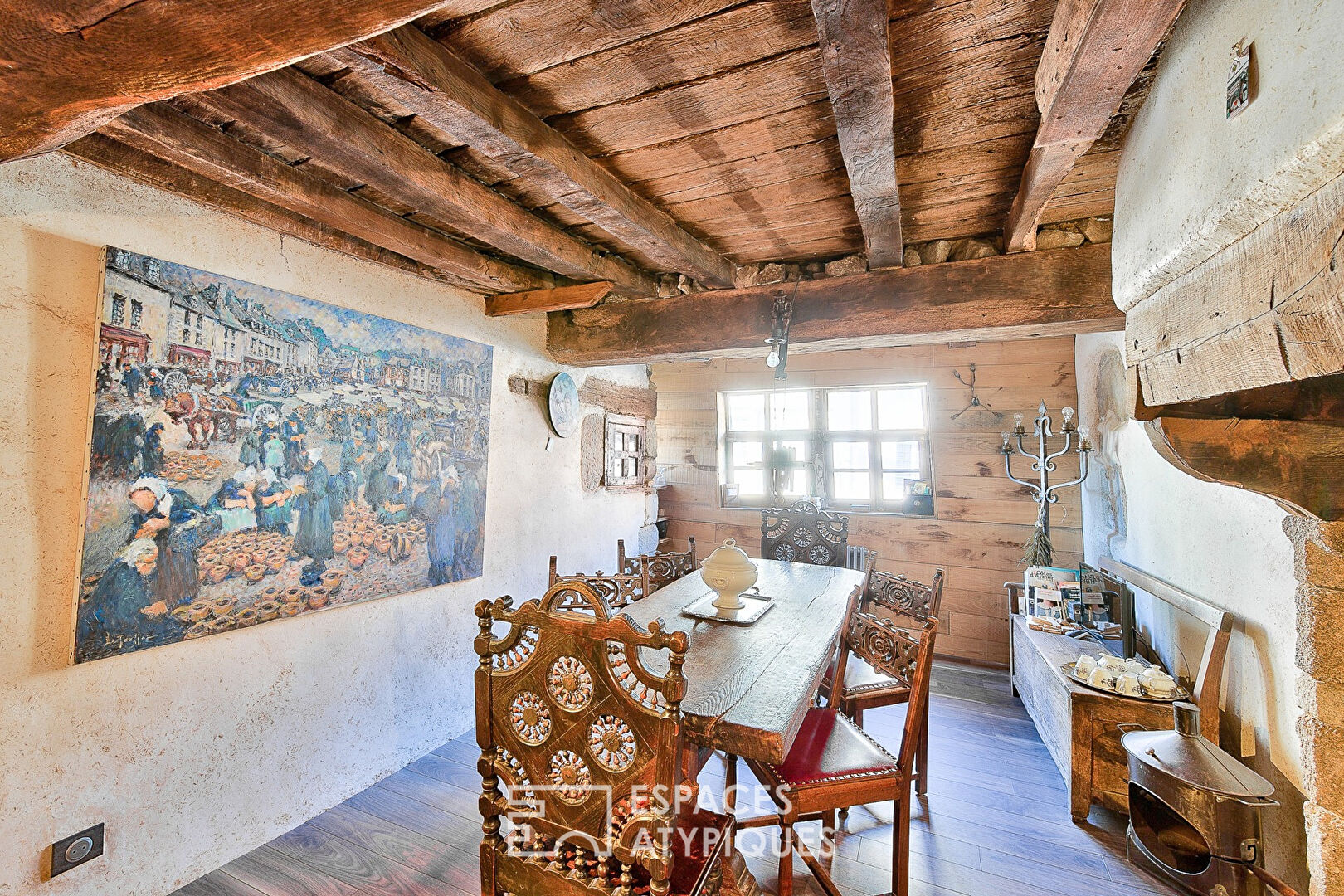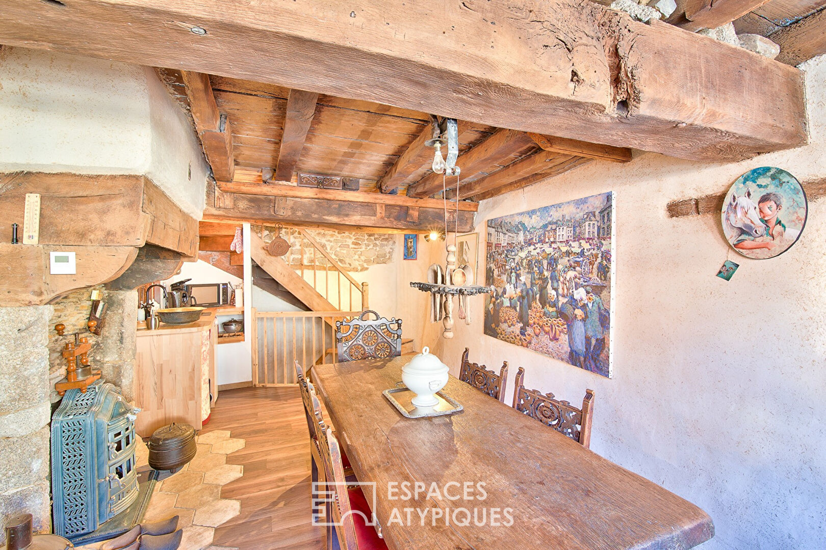 Formerly a tavern, this listed historic monument now offers warm, character-filled living just steps from the town square and Mathurin Méheut museum.
