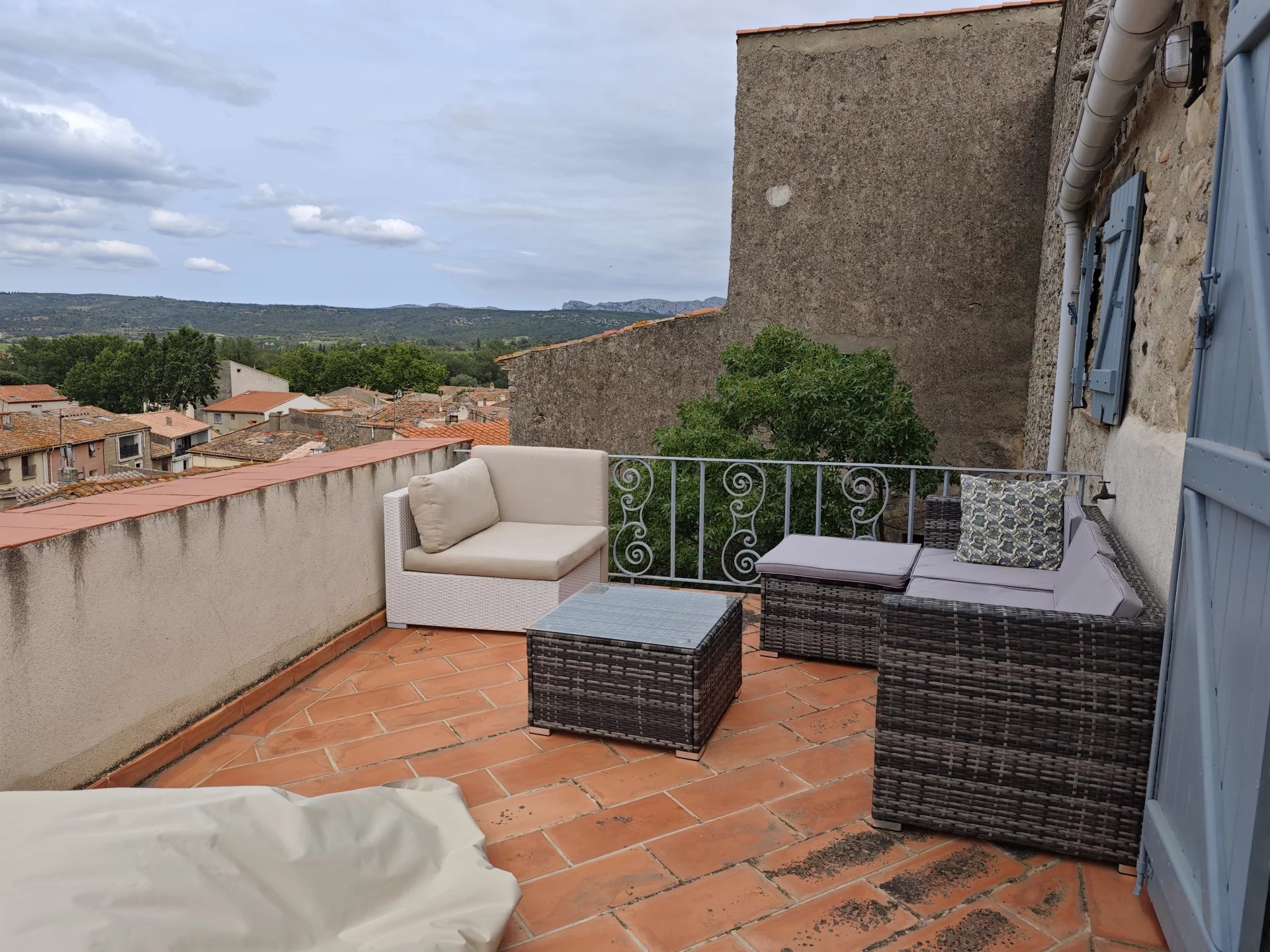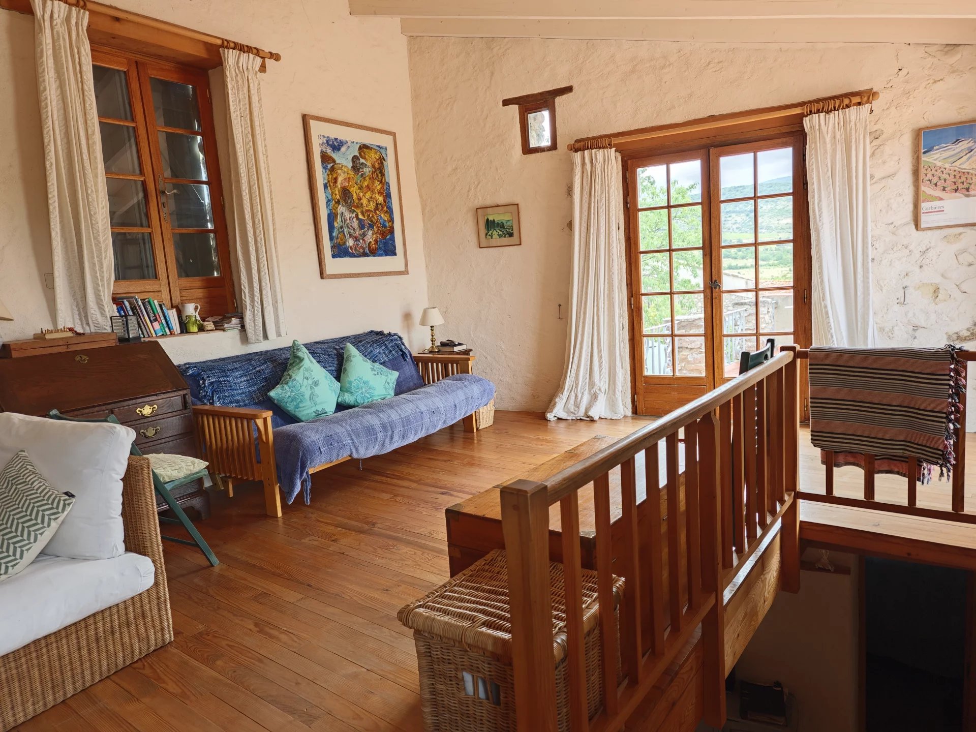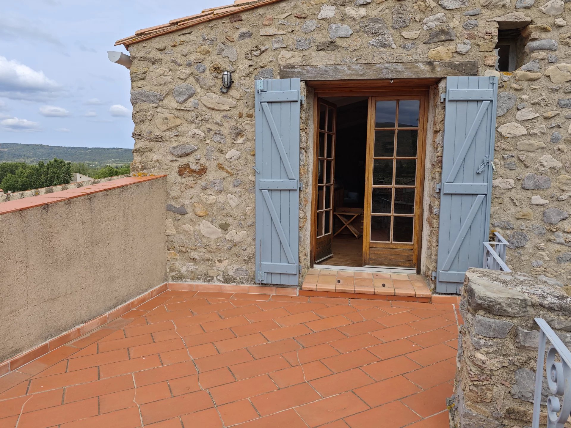 In the wine-growing village of Paziols, this renovated stone home combines charm, comfort, and sweeping countryside views. A Mediterranean-style courtyard garden and sunny terraces make it ideal for relaxed living in the Corbières.
