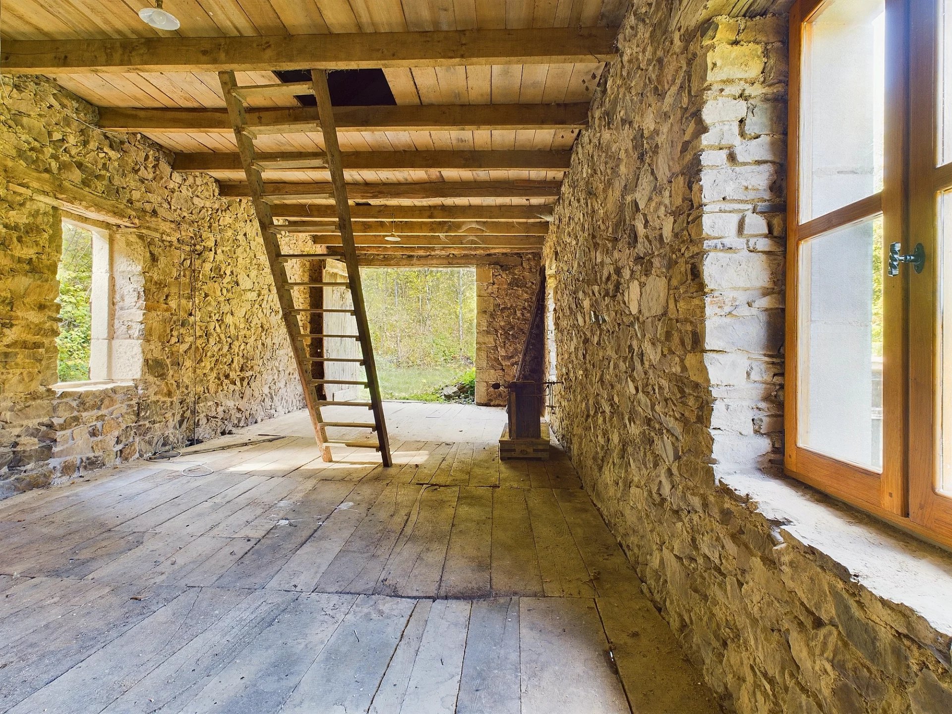The stone barn, already partially renovated, is ready for transformation. Originally planned as a wellness retreat, it’s a flexible project with major work already done.