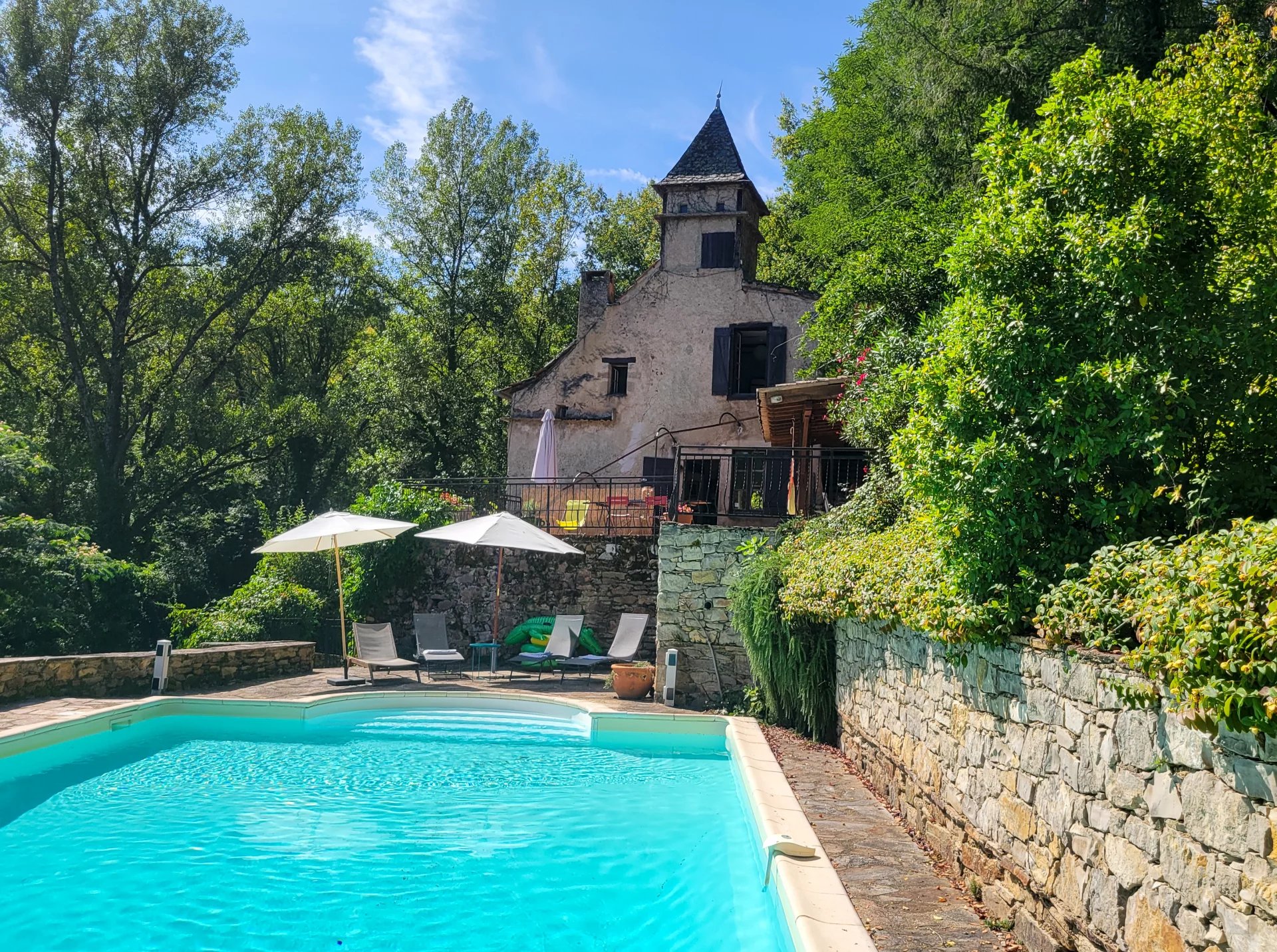Rare and magical, just minutes from the medieval village of Najac. This private stone home comes with a pool, a dreamy forest cabin, and a barn with planning permission—all on nearly 5 acres with show-stopping views of the château.