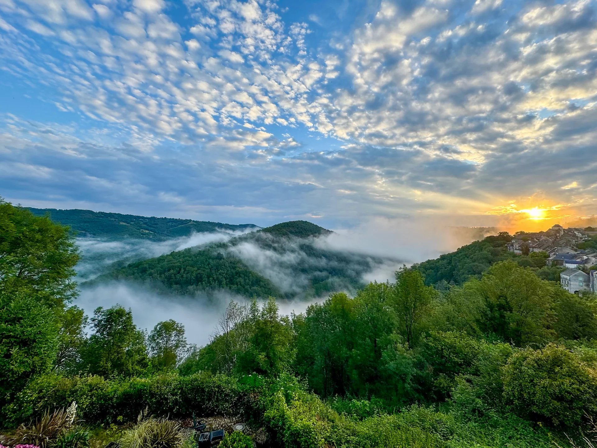 Secondly, the kitchen opens directly onto a 25 m² terrace. Here, you’ll enjoy sweeping views of the Aveyron Valley. It’s the perfect spot for morning coffee, summer meals, or evening sunsets.