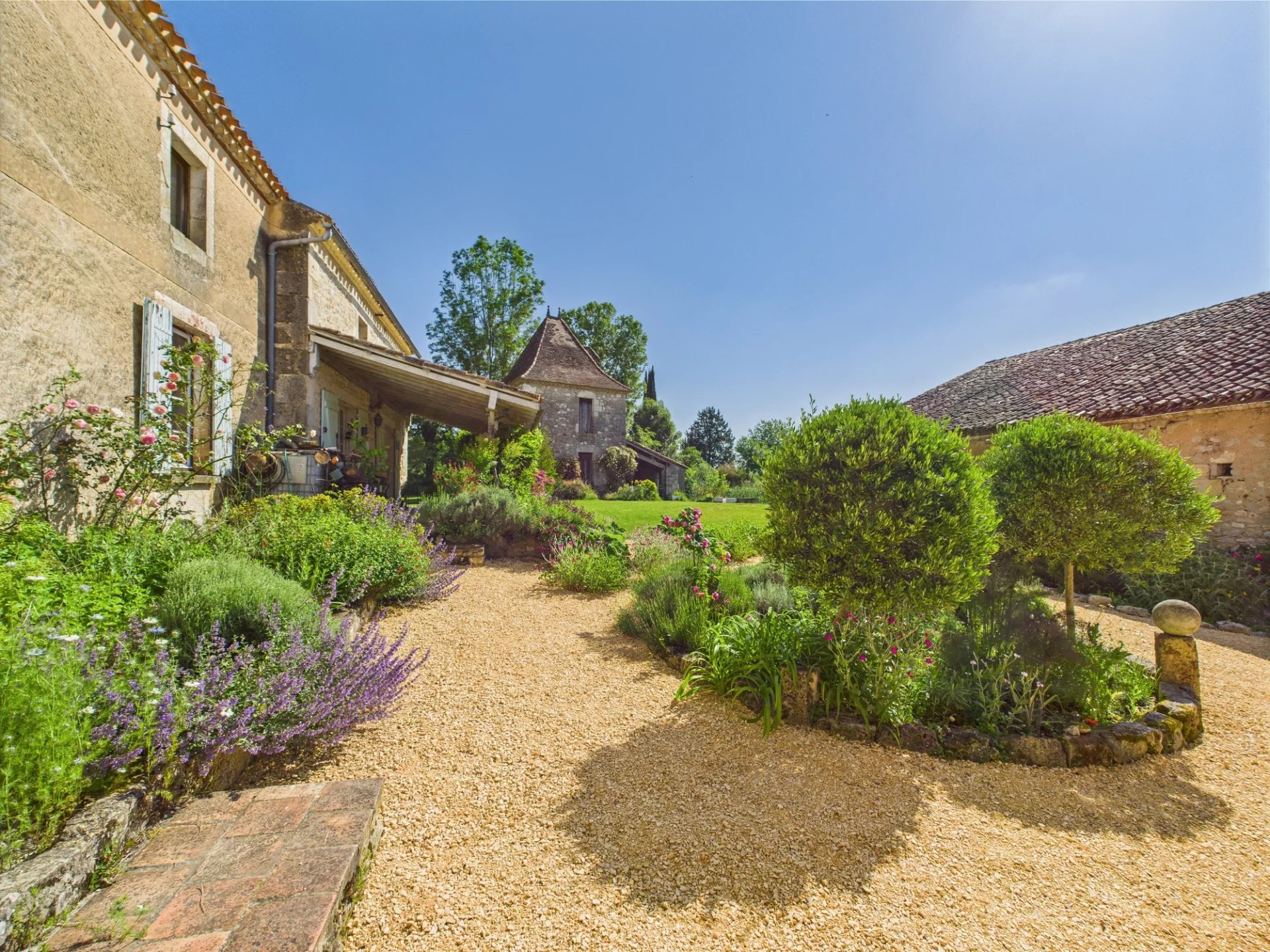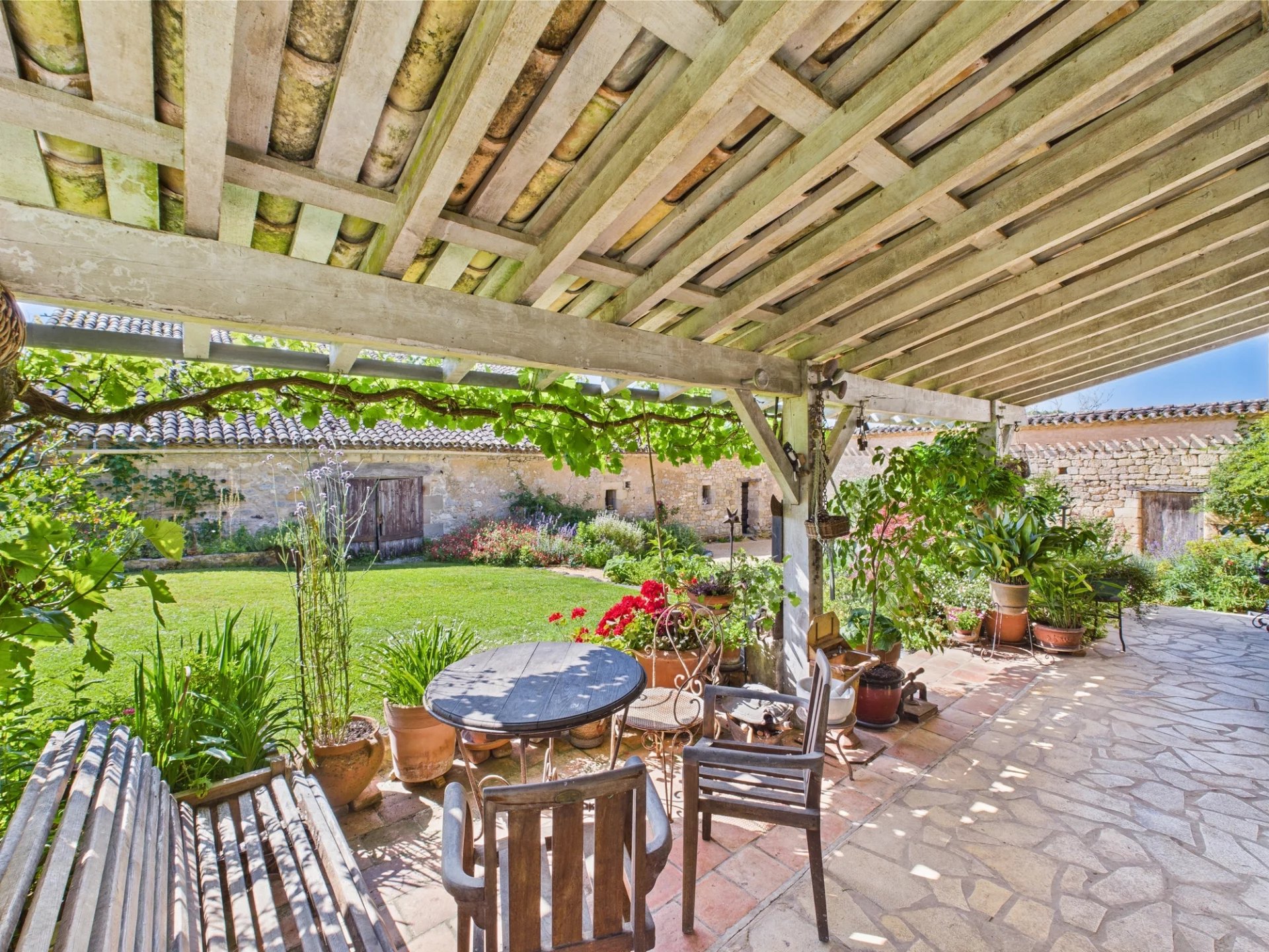A welcoming courtyard sits at the heart of the property, bordered by the main house, a picturesque pigeonnier, barn, and several outbuildings—perfect for creative projects or storage.