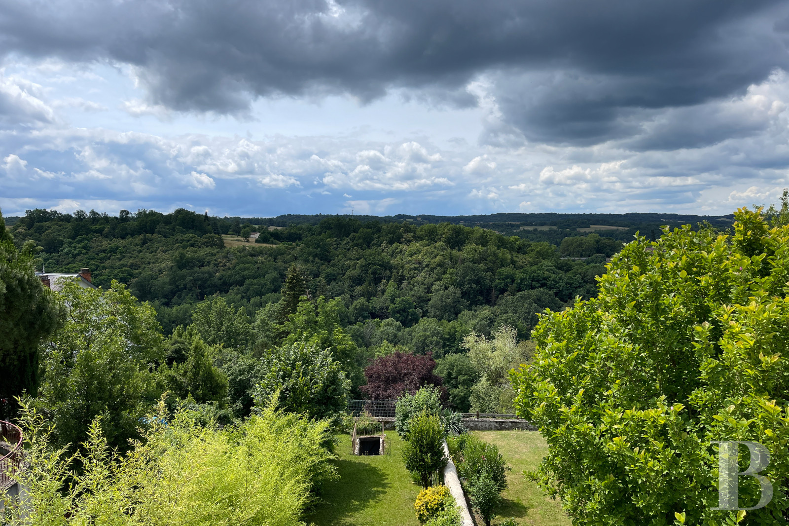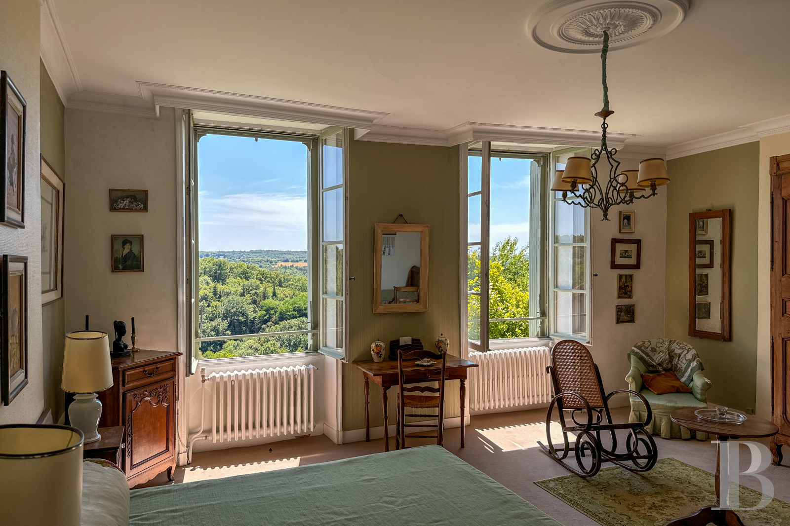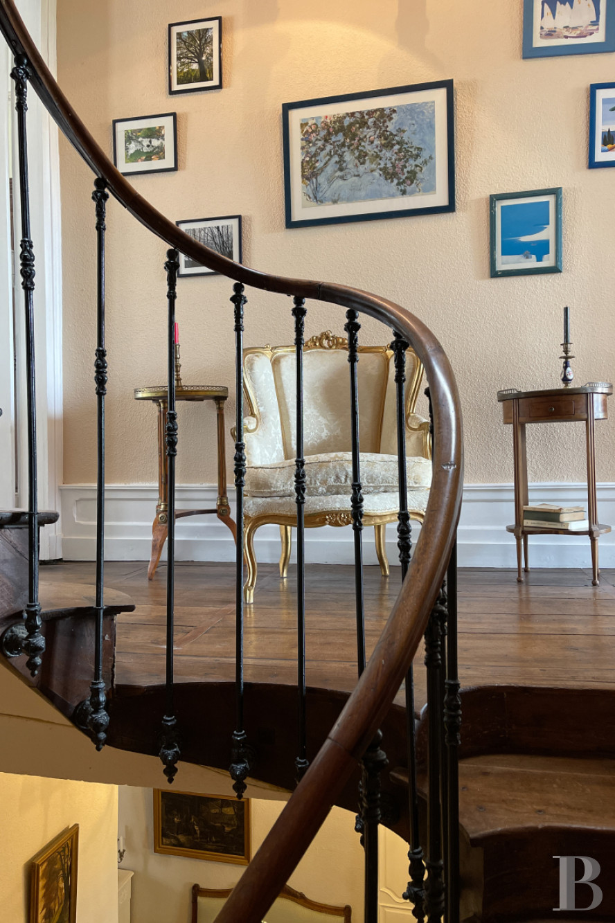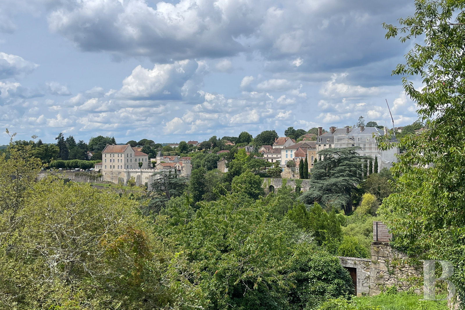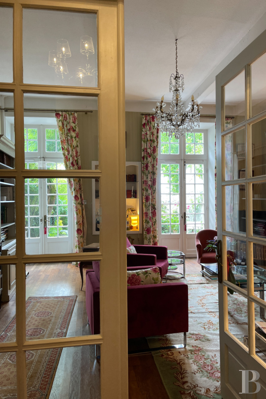 Perched above the Bandiat Valley in the historic district of Nontron, this refined maison de maître offers timeless charm and far-reaching views. Built in the 18th–19th century over medieval cellars, the home is full of original character—wood parquet, marble fireplaces, molded ceilings—all arranged across five thoughtfully laid-out levels.