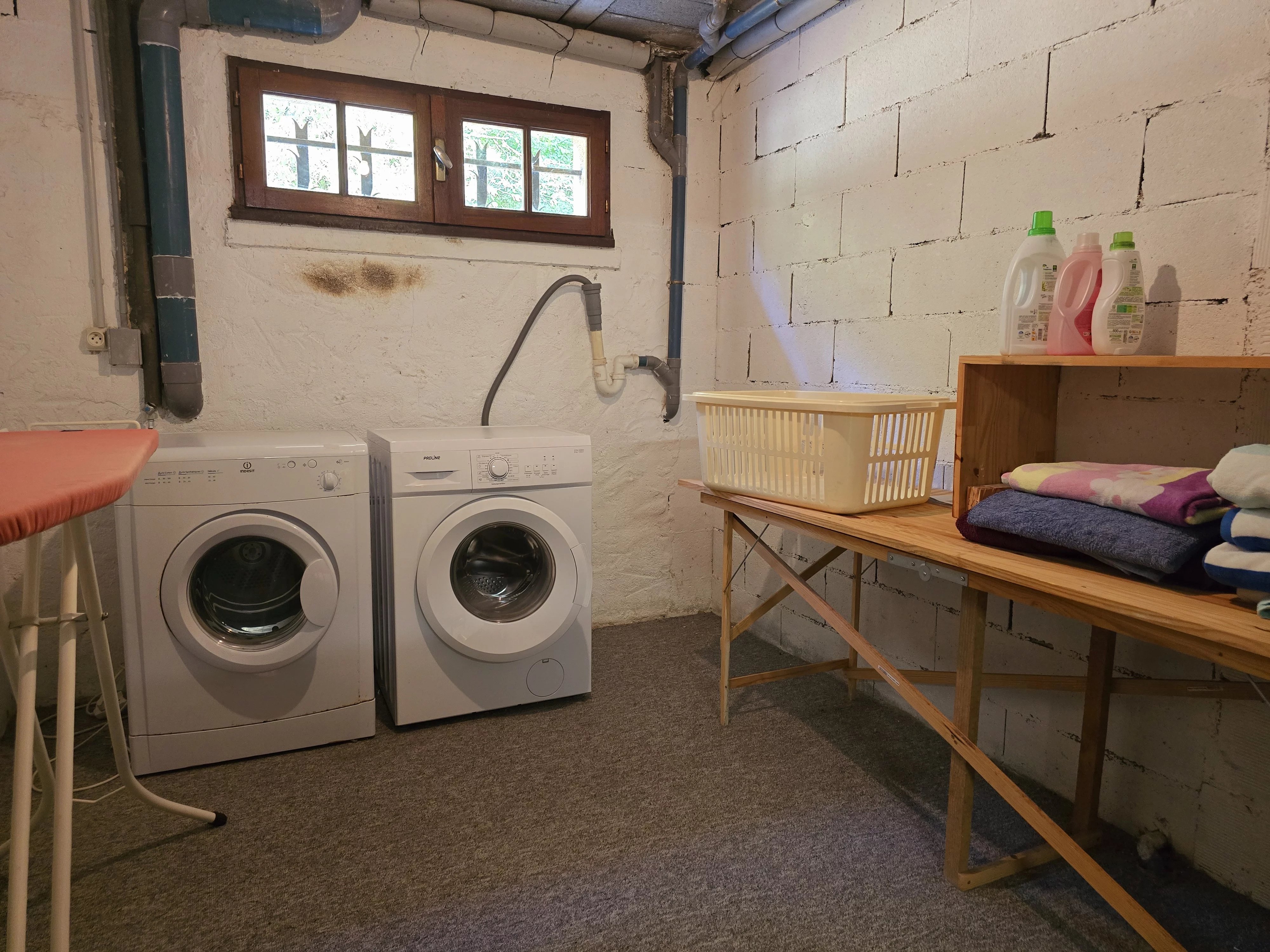 - Basement with garage, storage, and guest room