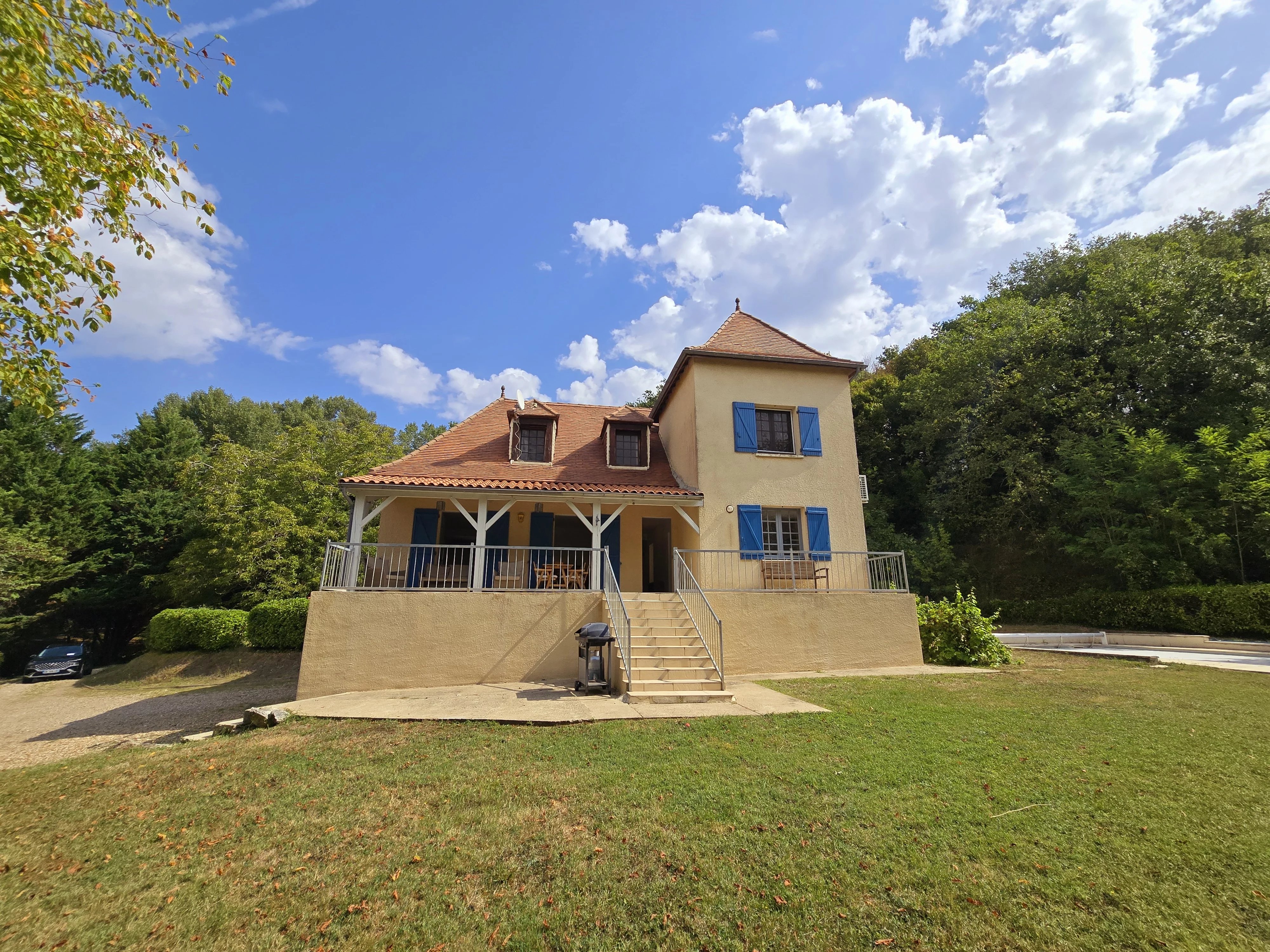 The grounds are equally impressive. A large swimming pool sits within the wooded setting, perfect for summer relaxation. Despite the privacy, the lively town of Eymet is only minutes away, and Bergerac Airport is just 25 minutes by car.