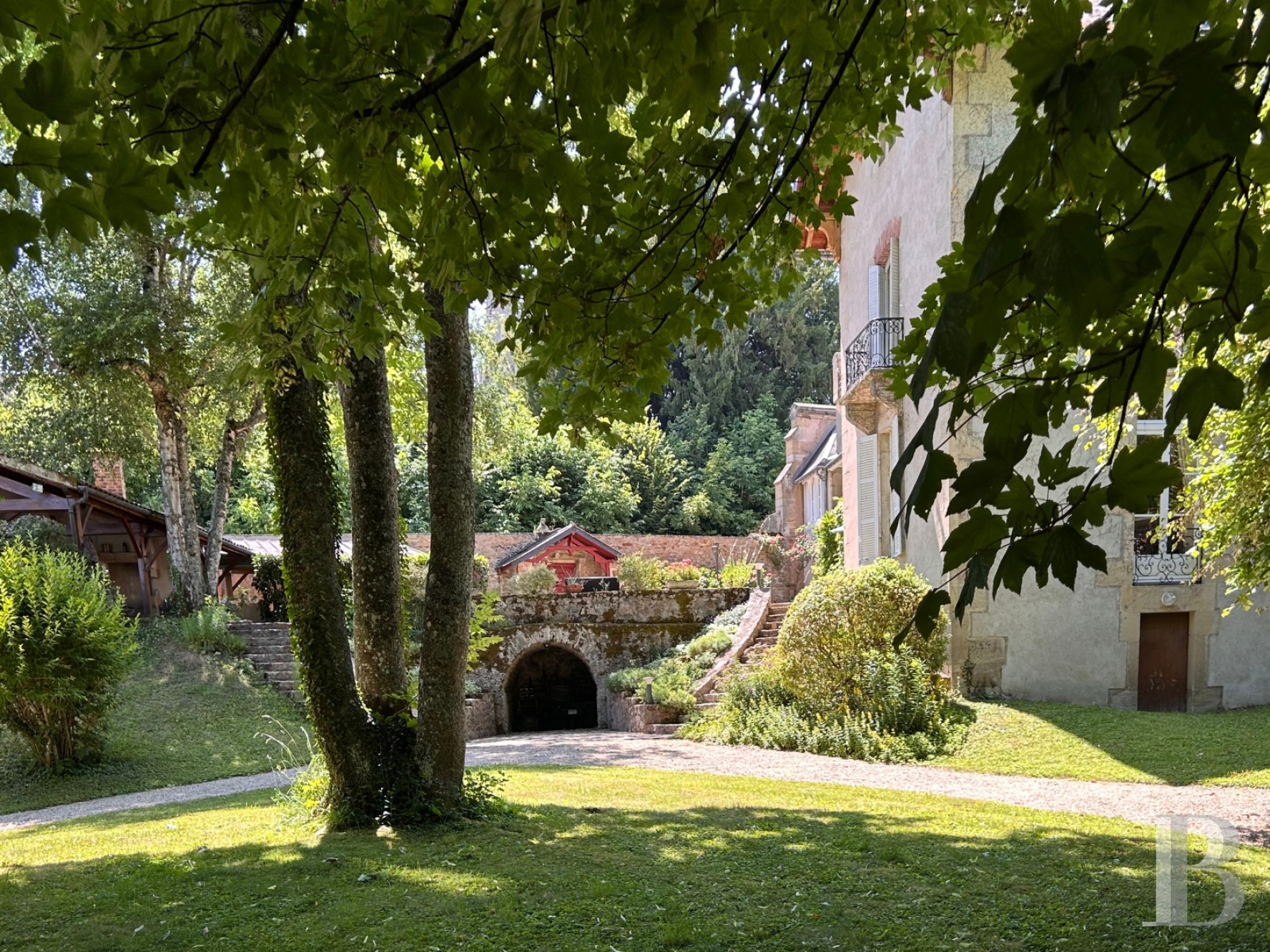 - Walled garden with century-old trees