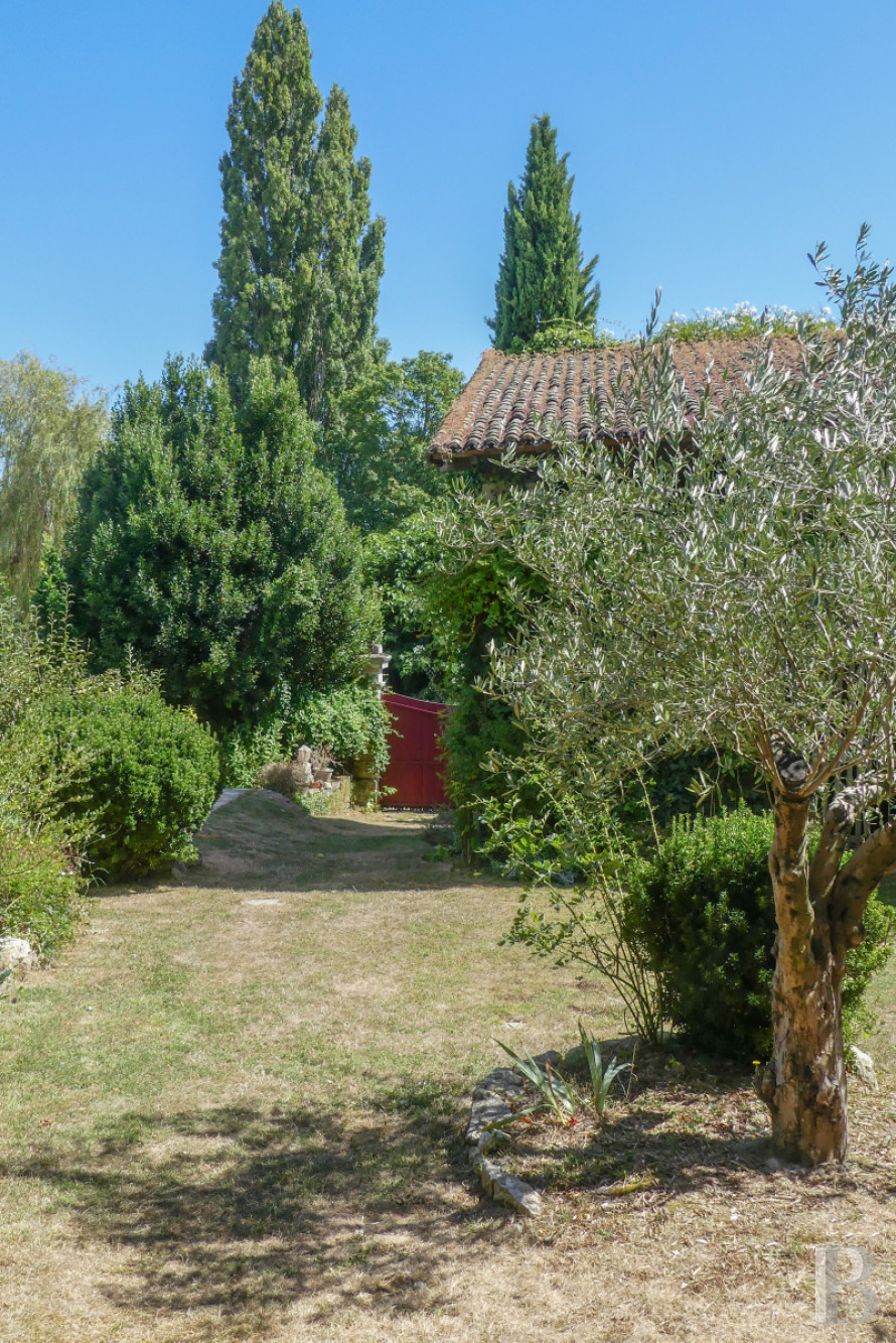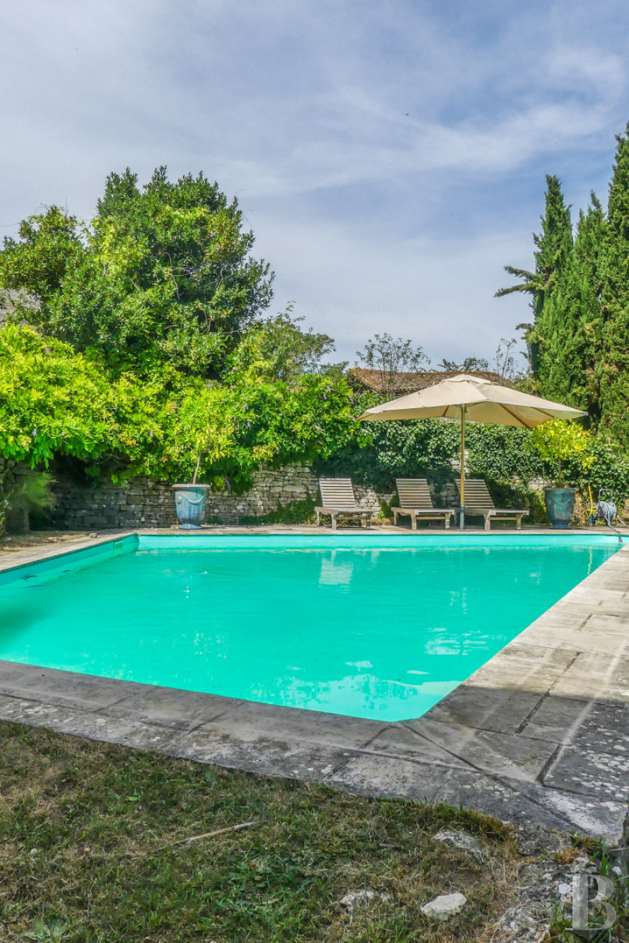 Outside, stone walls enclose a lush garden with hidden corners, a swimming pool, a well, and shaded seating. A small orchard lies just across the lane.