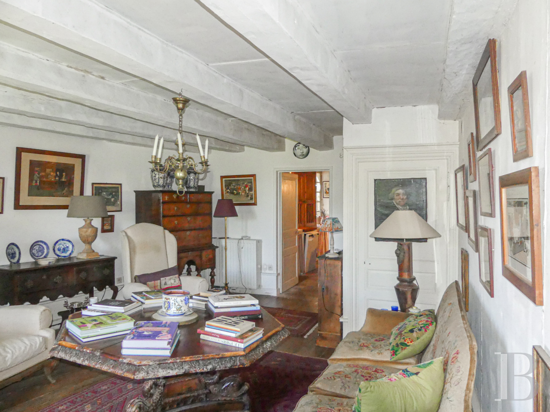Upstairs, the first floor has four unique bedrooms, a large shower room, and a powder room. The second floor includes a sunny lounge-library, another bedroom, bathroom, and attic. The garden level features a summer kitchen, workshop, shower room, and vaulted cellar.