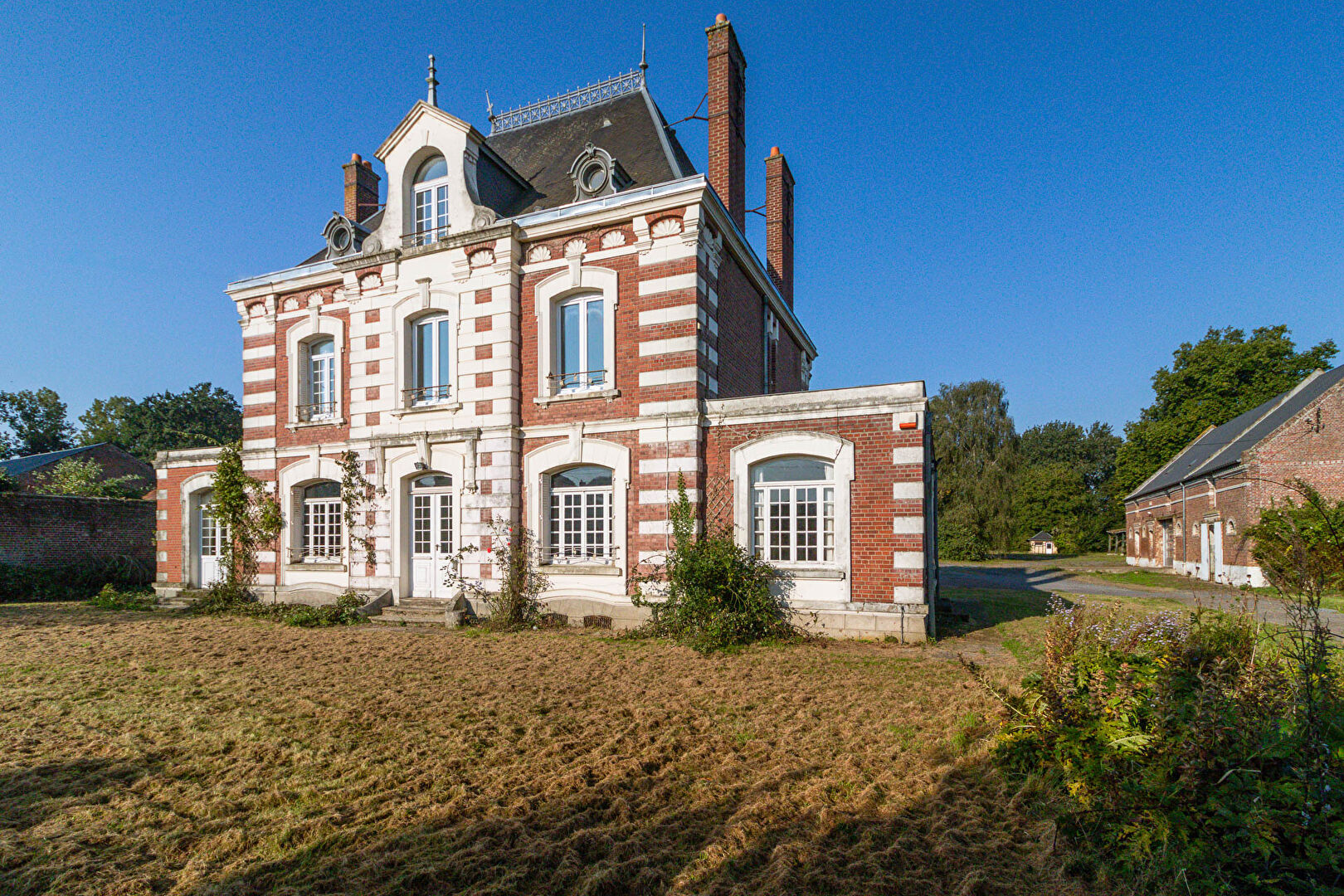 A true sleeping beauty in the peaceful countryside of Rosieres-en-Santerre, this maison de maître is ready for revival. Set on 1.9 hectares of land with mature trees and an orchard, the property includes 310 sqm of living space and over 1,400 sqm of solid outbuildings. A rare find for those seeking a character-filled renovation project with space to dream.