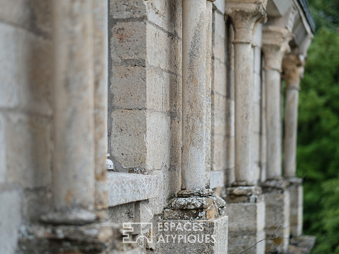 Pass through the gates and encounter striking columns from the Abbey of La Cour Dieu—clear evidence of the home’s layered past.