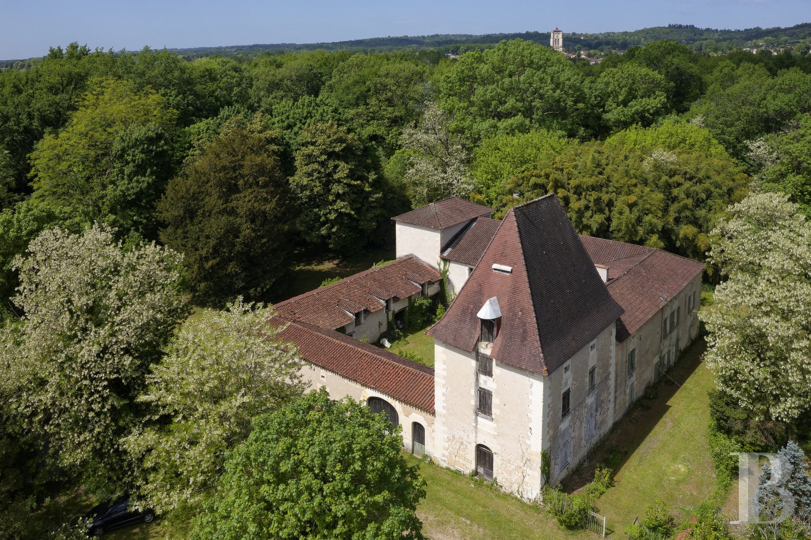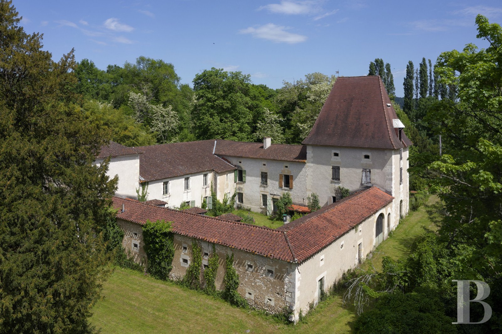 Brimming with character and potential, this former agricultural estate near Saint-Astier offers a rare combination of space, history, and serenity. Set across 9 hectares of meadows, woodland, and a 2,000 m² pond, the stone buildings frame a peaceful interior courtyard full of charm.