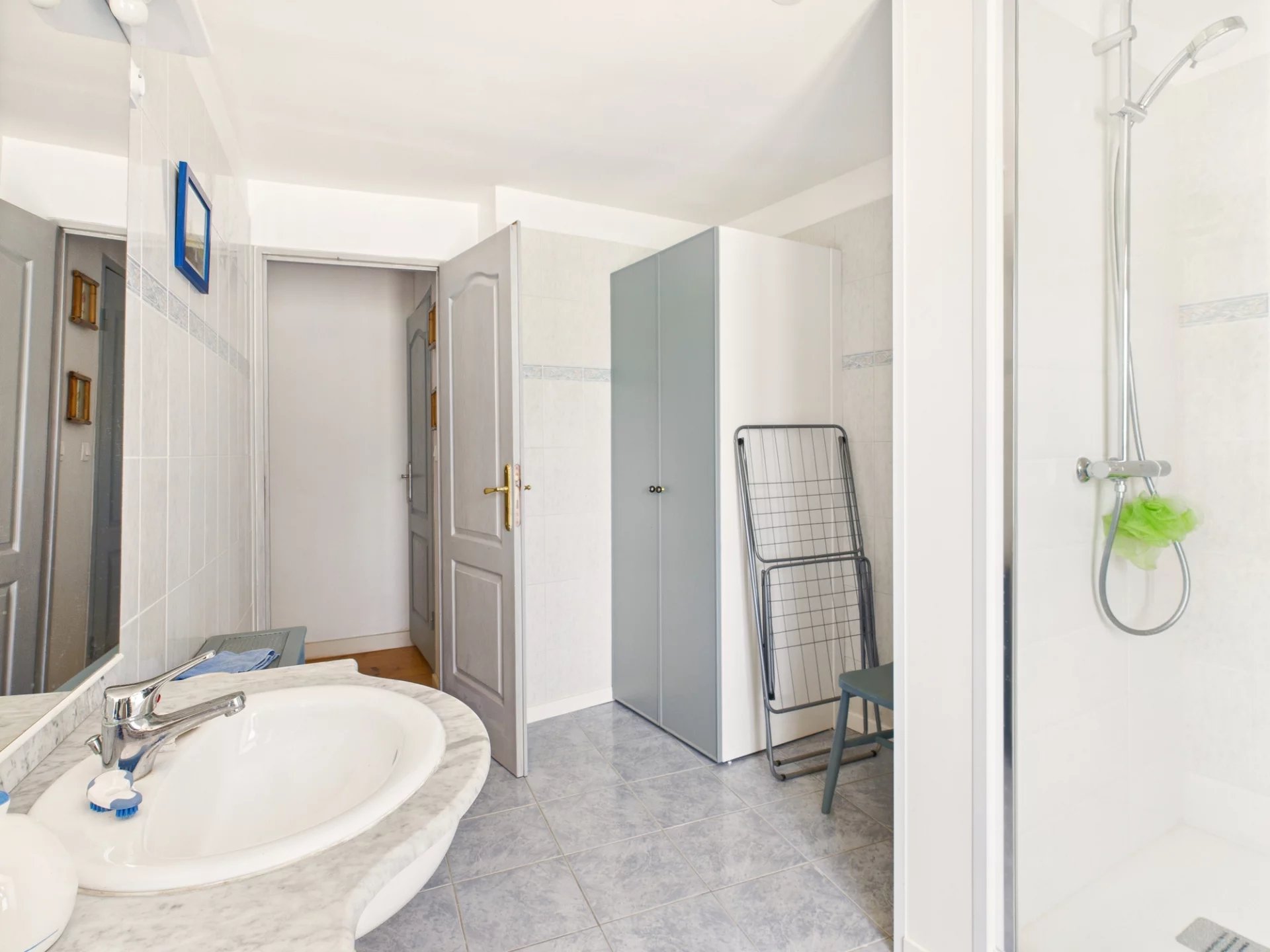 The ground floor flows effortlessly through a spacious, open-plan kitchen, dining room, and living area. Two stone alcoves—believed to be remnants of the former château stables—bring a unique architectural touch to the space.