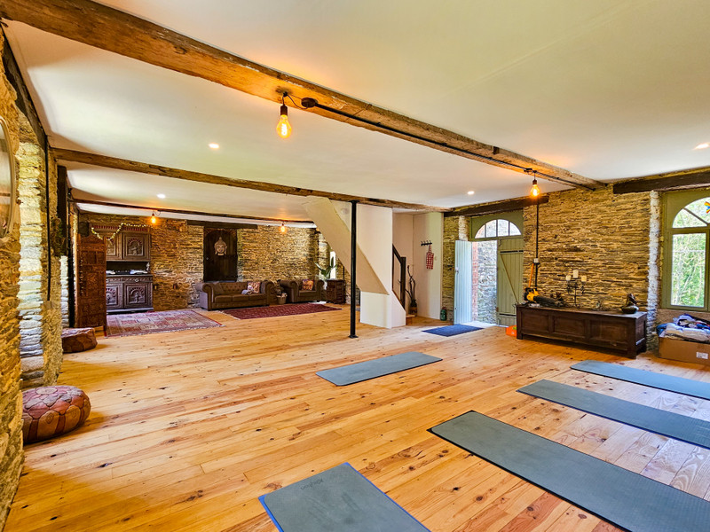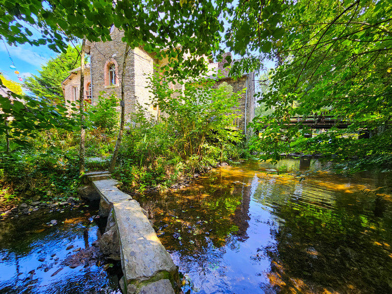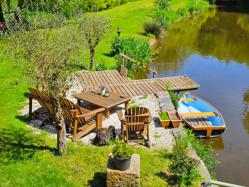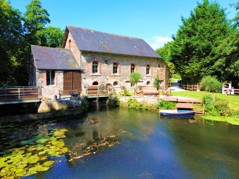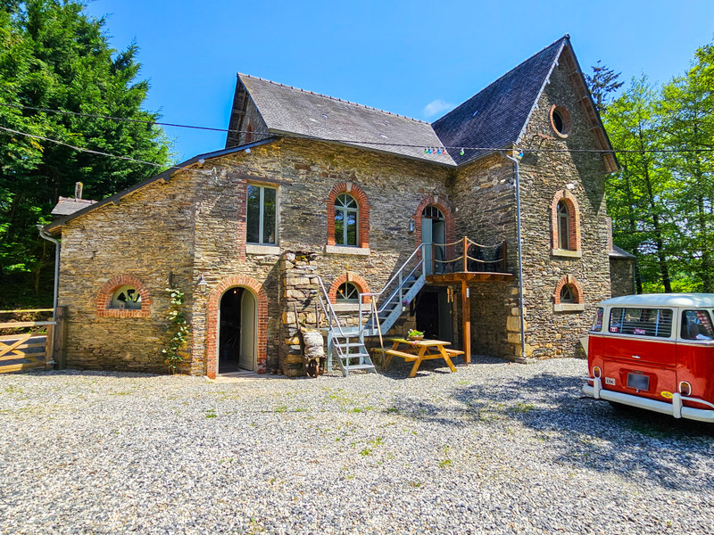 Surrounded by flowing water and lush greenery, this unique riverside estate in Merléac offers character, calm, and incredible potential. It includes a charming, fully renovated stone house and a part-renovated historic watermill—perfect for a peaceful escape or creative project.