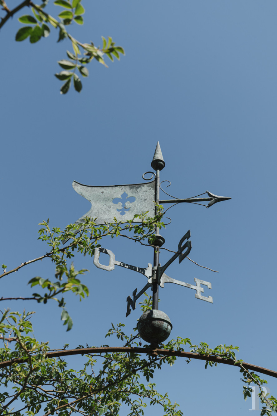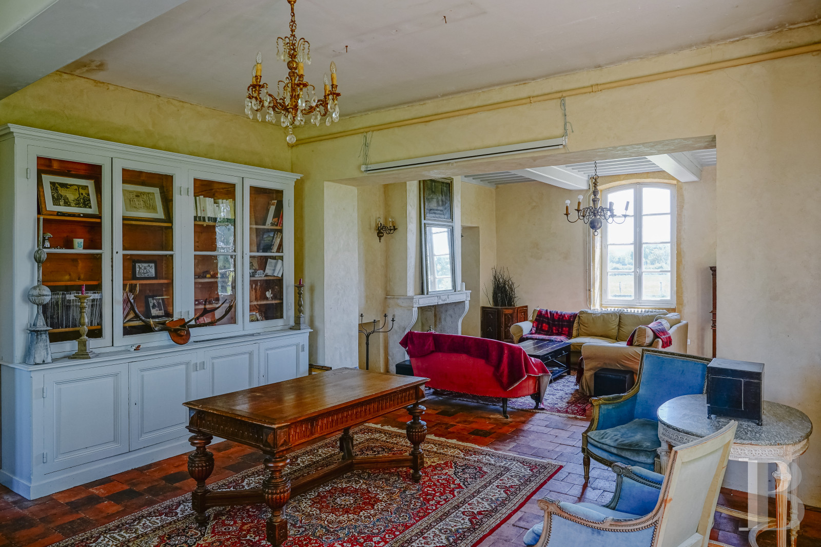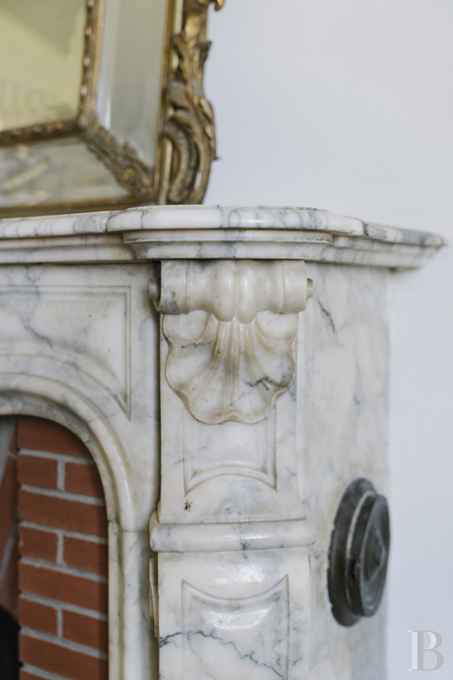Inside, a grand vestibule leads to a 50 m² living room with beams, fireplace, and natural light from three sides. The kitchen connects to a dining room with parquet flooring and marble fireplace. Upstairs, four generous bedrooms each include a private water point. Attic and outbuilding offer further living potential.