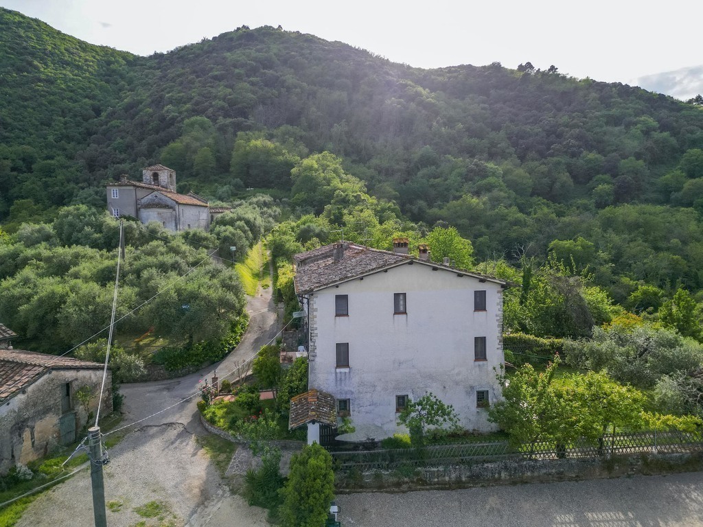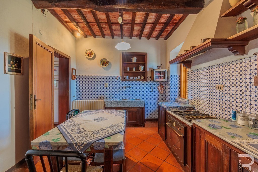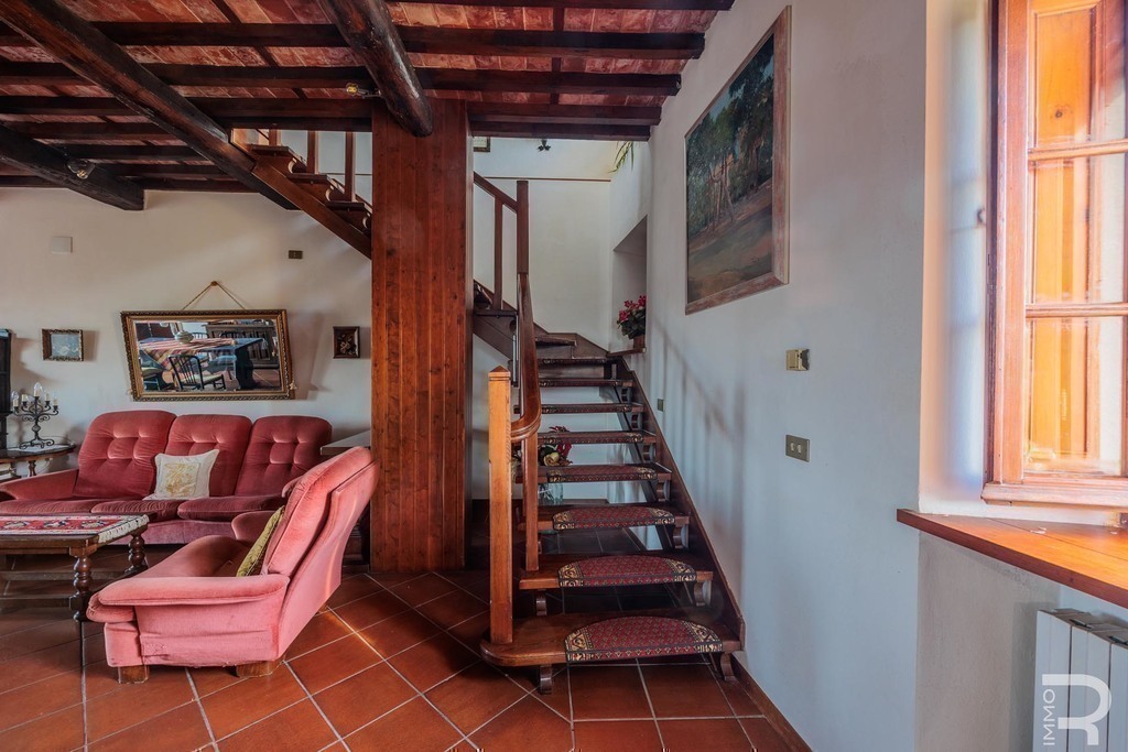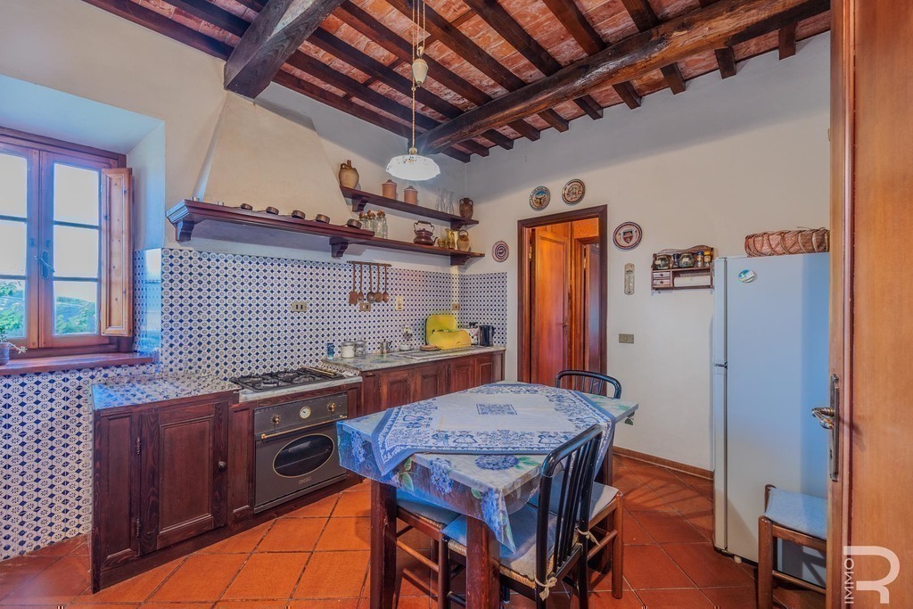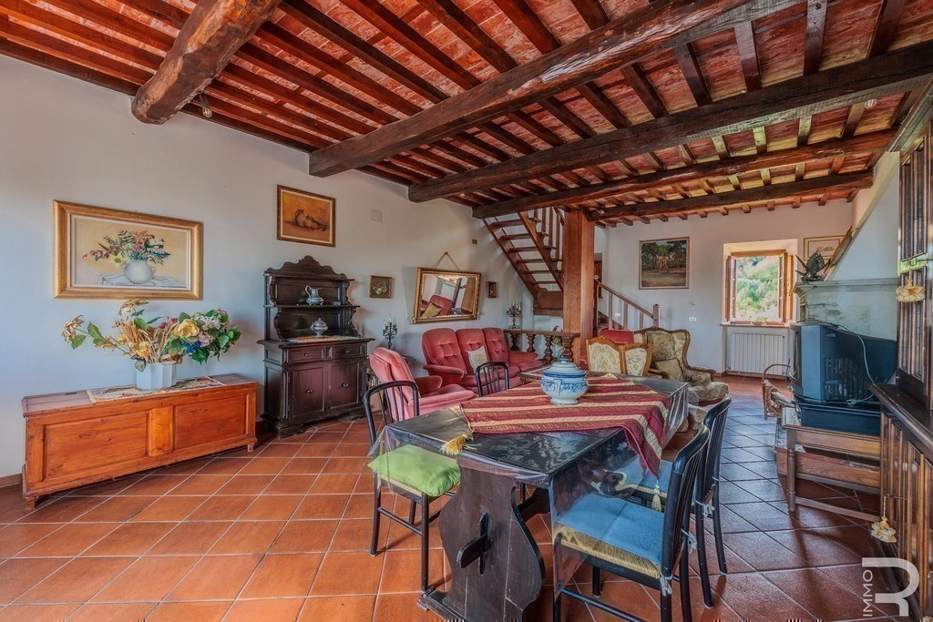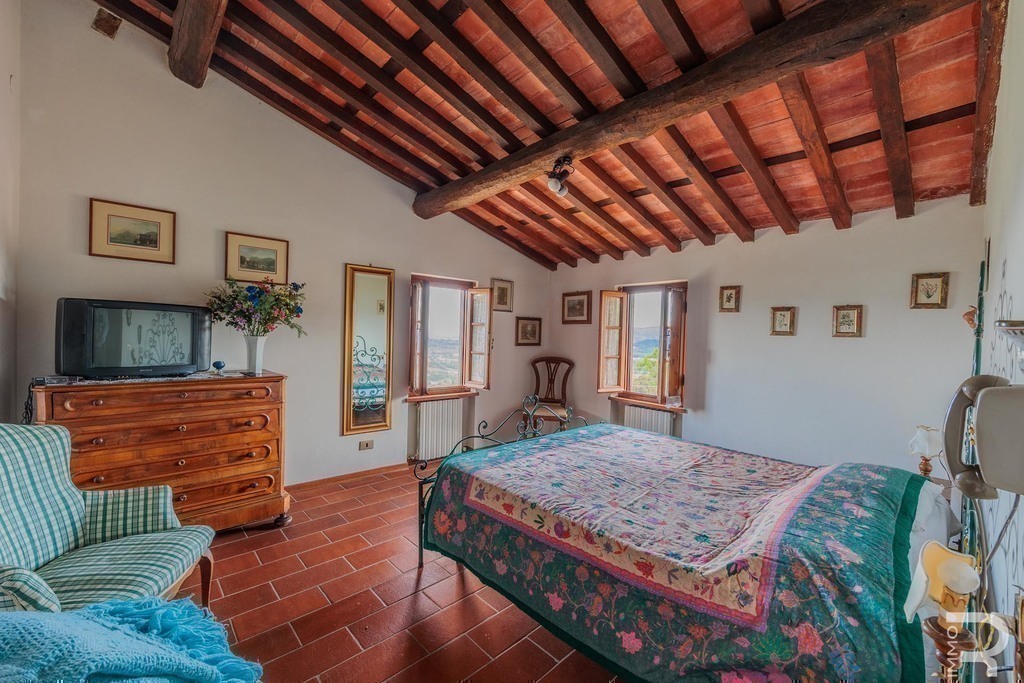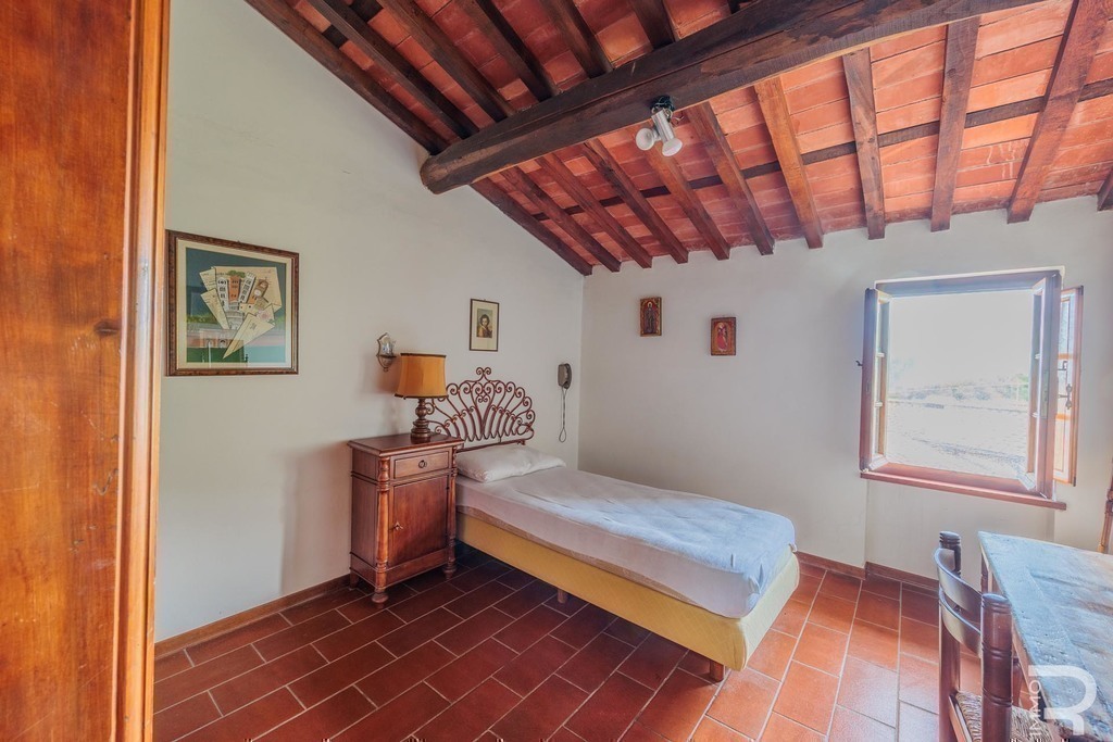 Open on three sides and part of a charming borgo, the property enjoys sweeping countryside views and a quiet, timeless atmosphere.