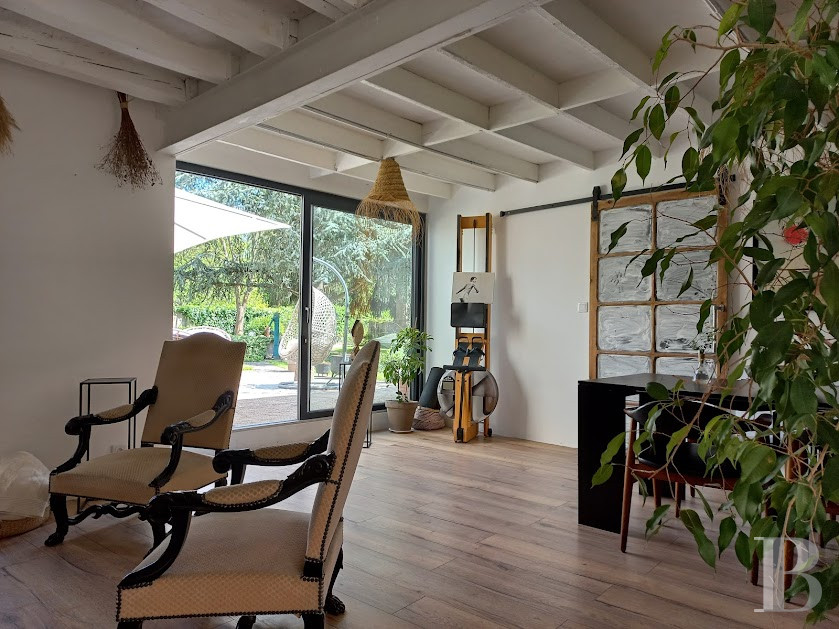 Located at the southern edge of Indre-et-Loire, the home is 10 minutes from Grand-Pressigny and 40 minutes from Châtellerault, with its TGV to Paris in under two hours. Surrounded by valleys, rivers, and the La Brenne natural park, the setting is both practical and serene.