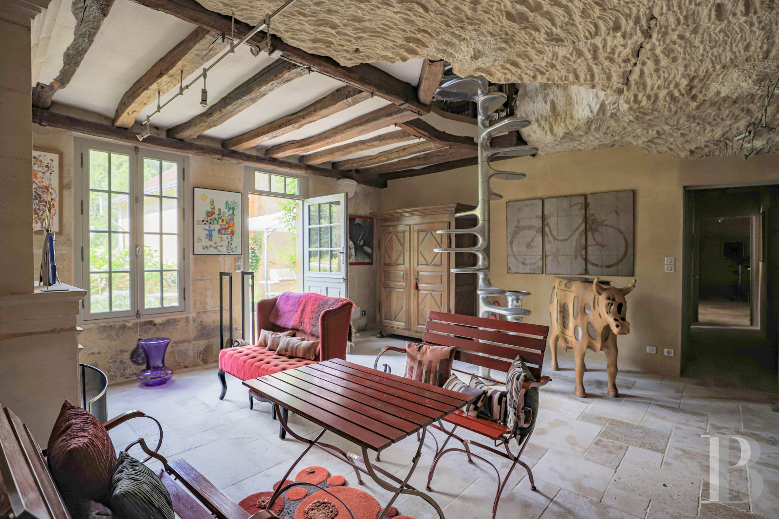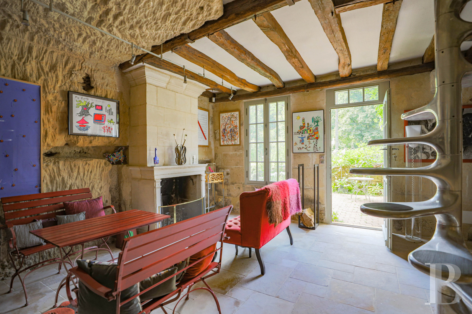 - Burgundy stone floors and tuffeau fireplace