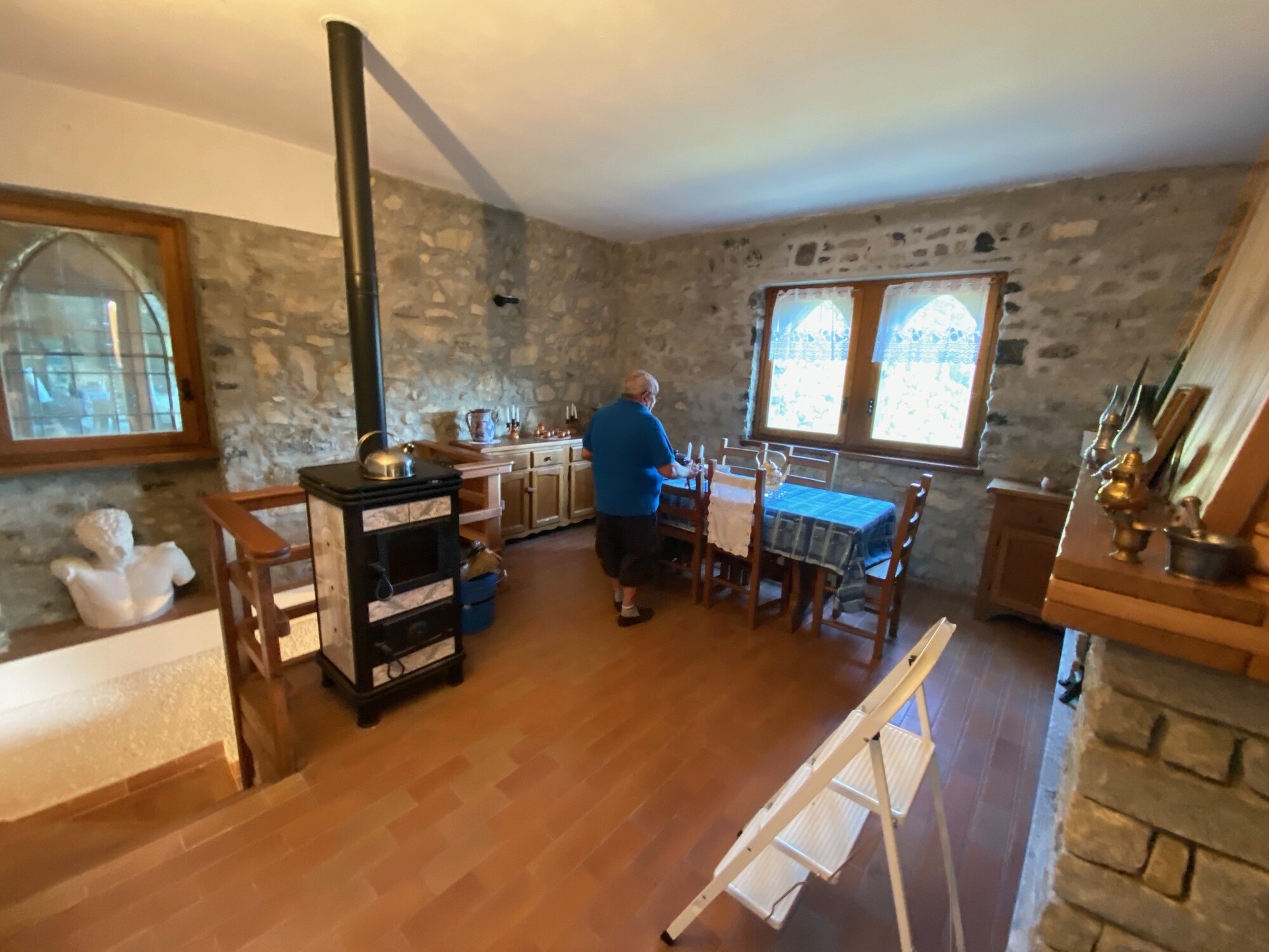 Inside, the ground floor includes a living room entrance, cellar, and porch. Upstairs, find a semi-habitable kitchen, dining room, two bedrooms, and bathroom. The bright veranda invites slow mornings and sunset dinners.