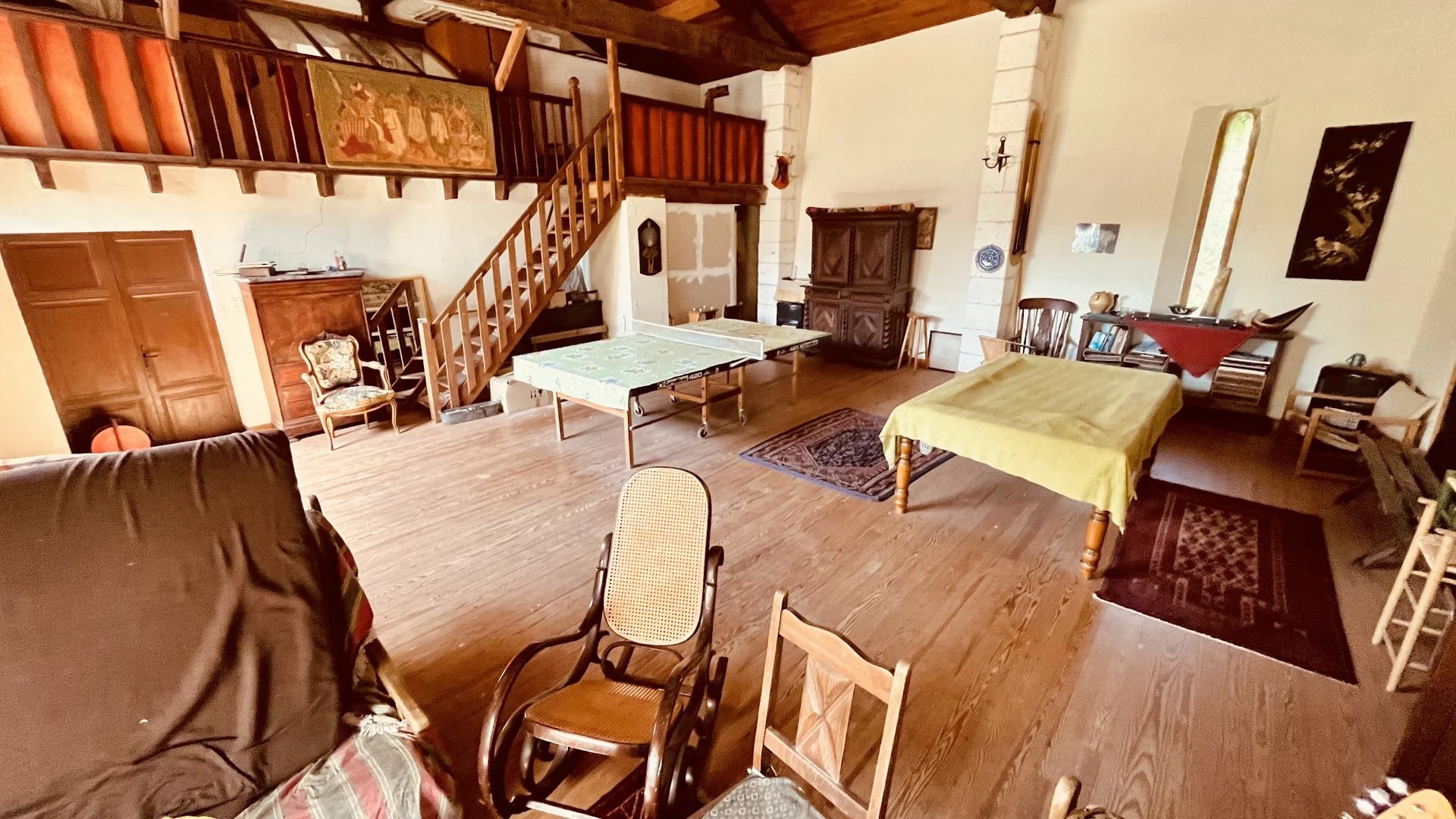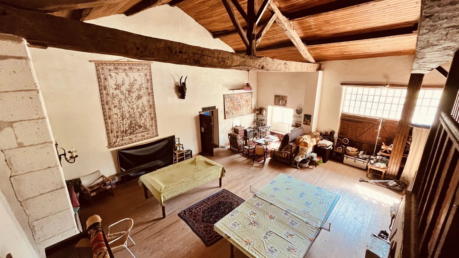 Across the hall, a majestic 72m² room invites imagination. It could become a library, studio, or additional living space (subject to permissions). Beyond, you’ll find a large storage area and the boiler room.