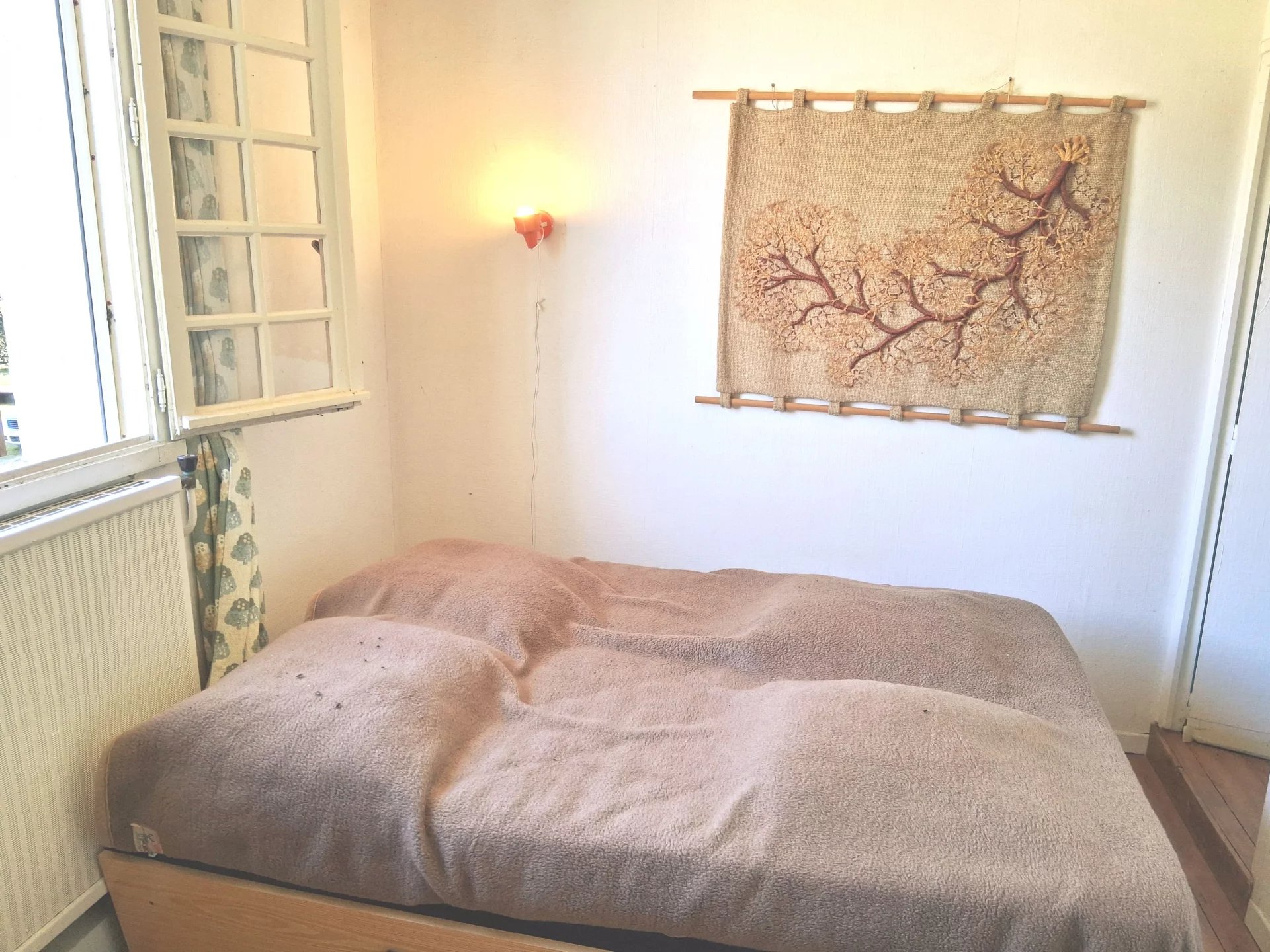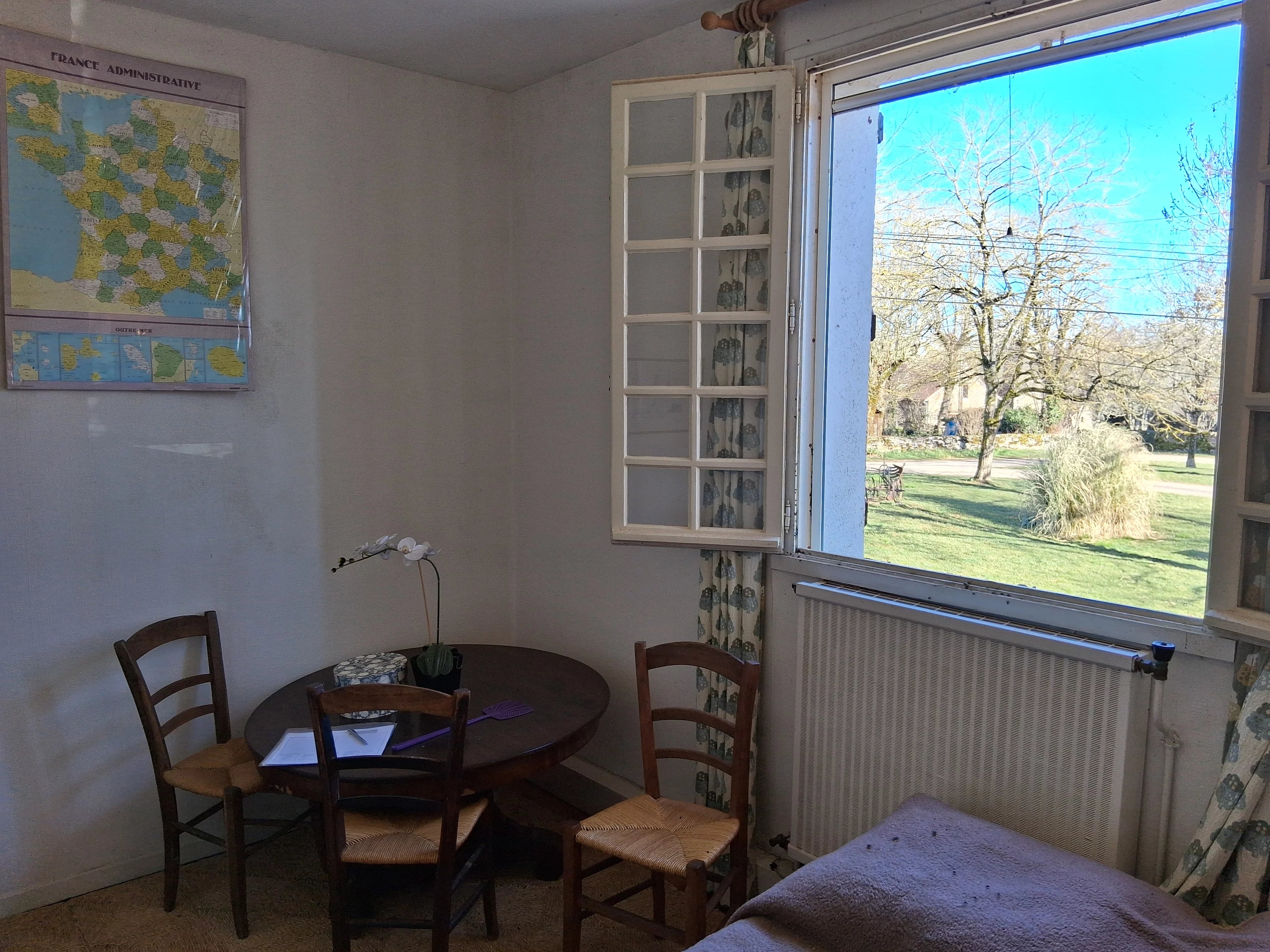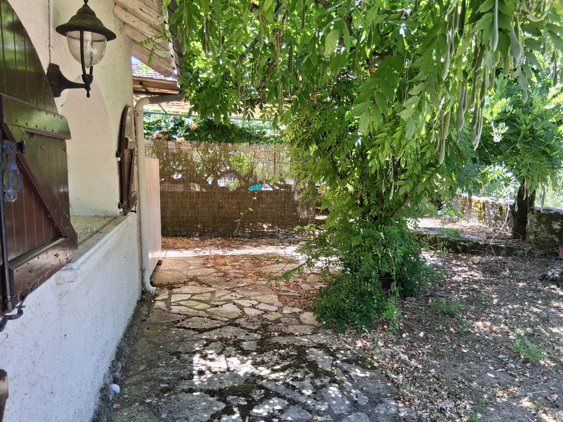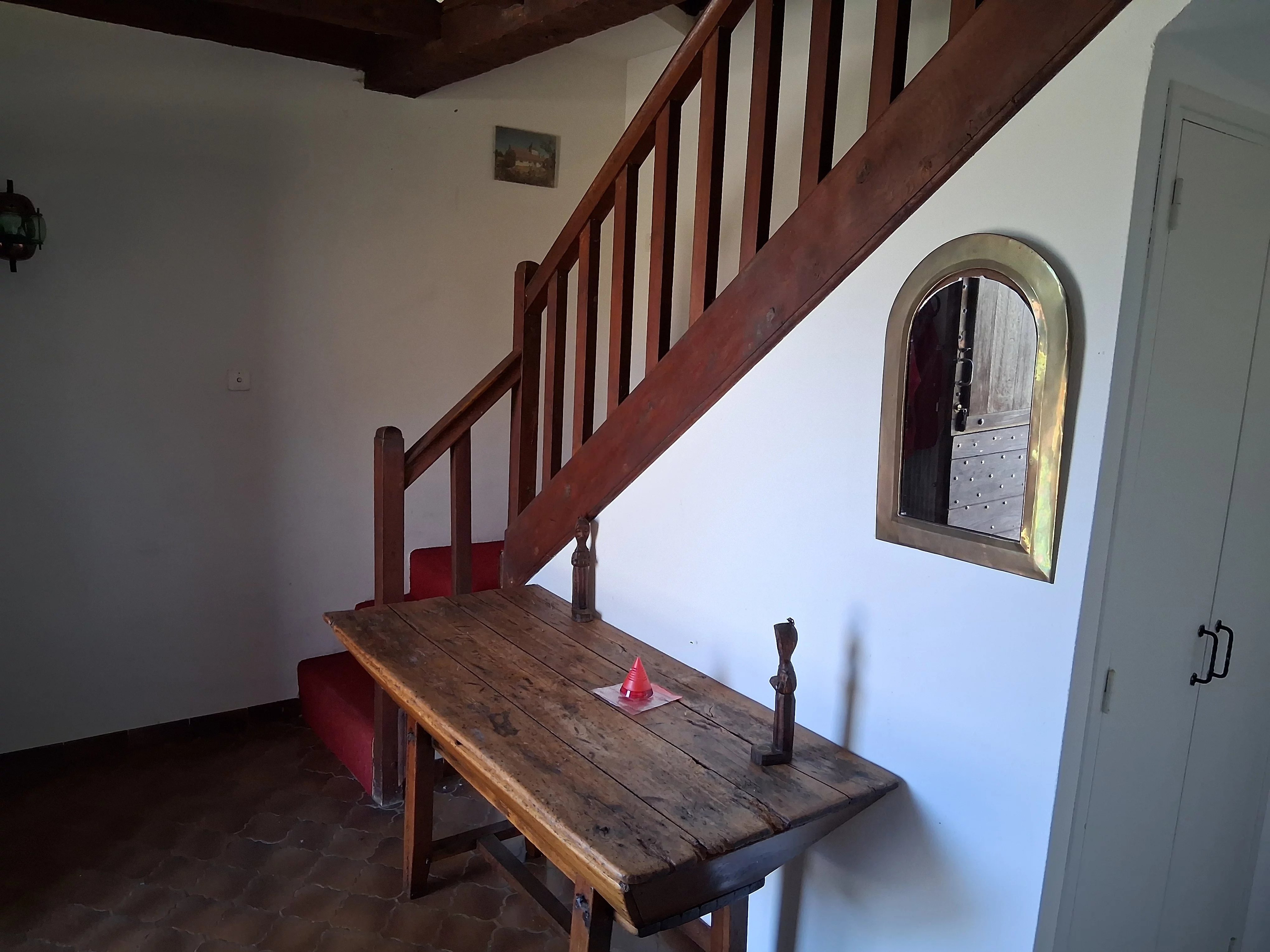 Step inside to find a welcoming entrance hall, a large living room with fireplace, and a stone kitchen overlooking the garden. One bedroom with bathroom is conveniently located on the ground floor.