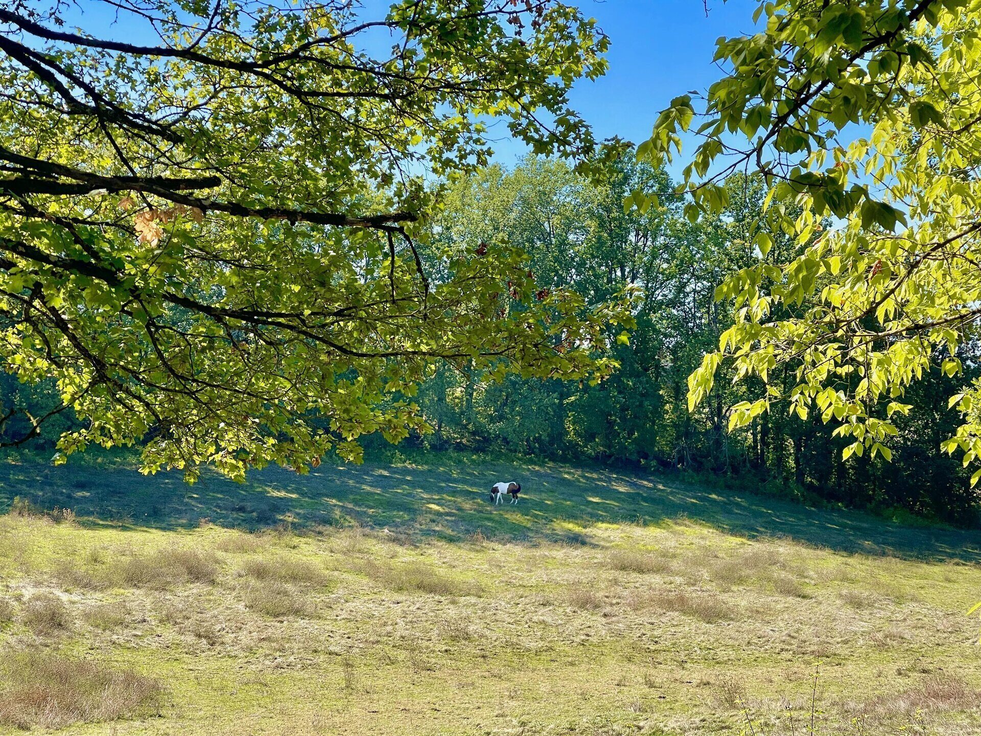 - Mature oak trees and assorted fruit trees