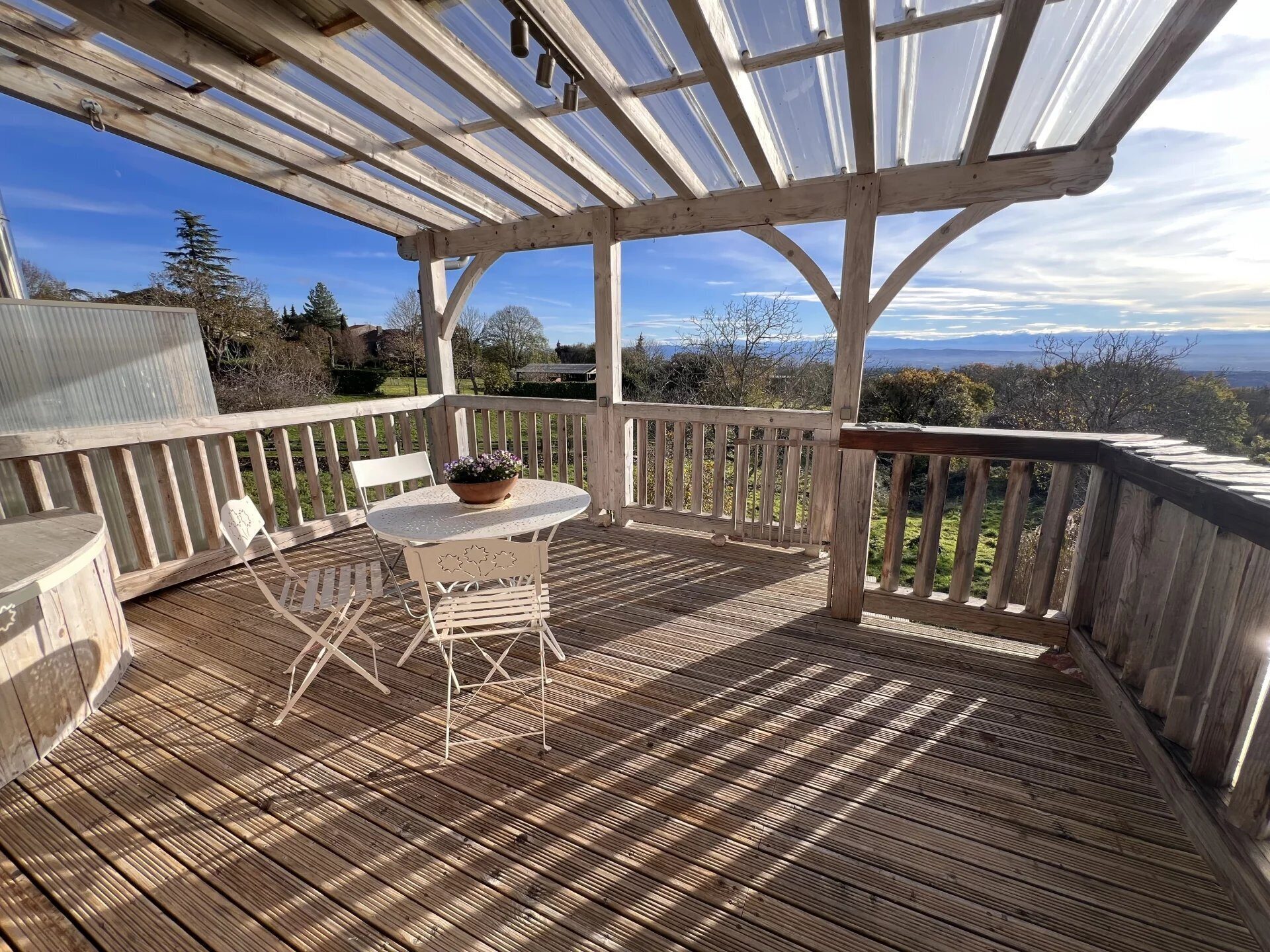 Radiance defines this contemporary wooden home, offering wide open views across rolling countryside and the distant Pyrenees. Its setting in a lively hamlet near Montolieu brings creative energy while still giving a sense of calm and privacy.